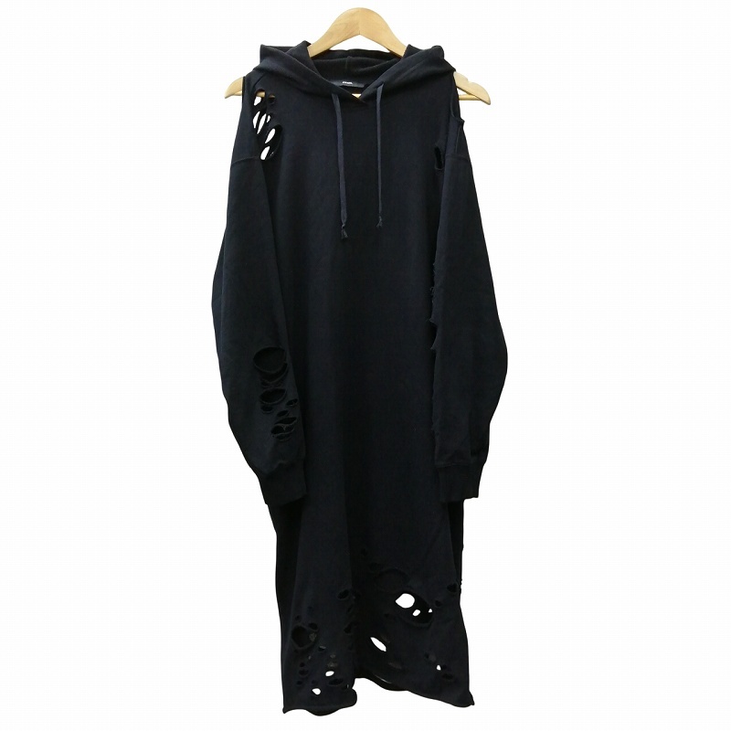 ディーゼル DIESEL ダメージ加工 ワンピース パーカー ブラック Mサイズ相当 レディース