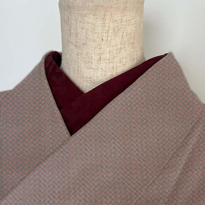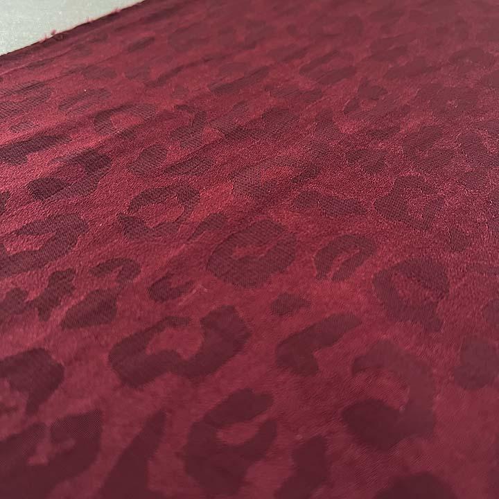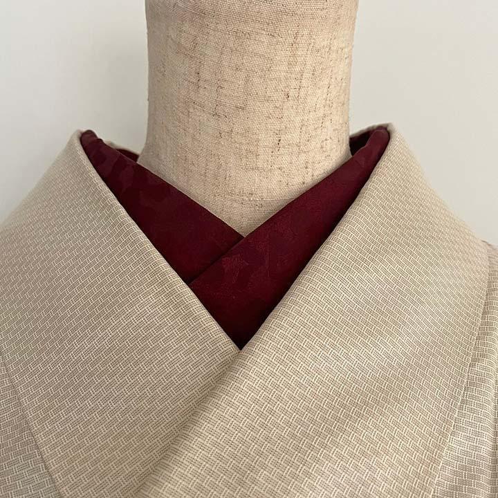 こっくりとしたエンジのとても柔らかな地に、ヒョウ柄の織りだされた半衿です。