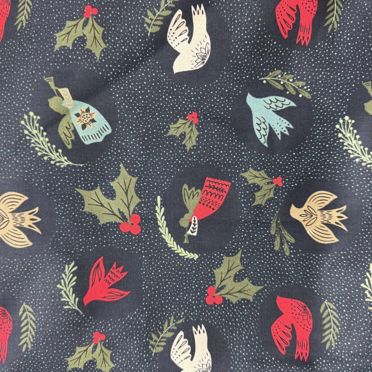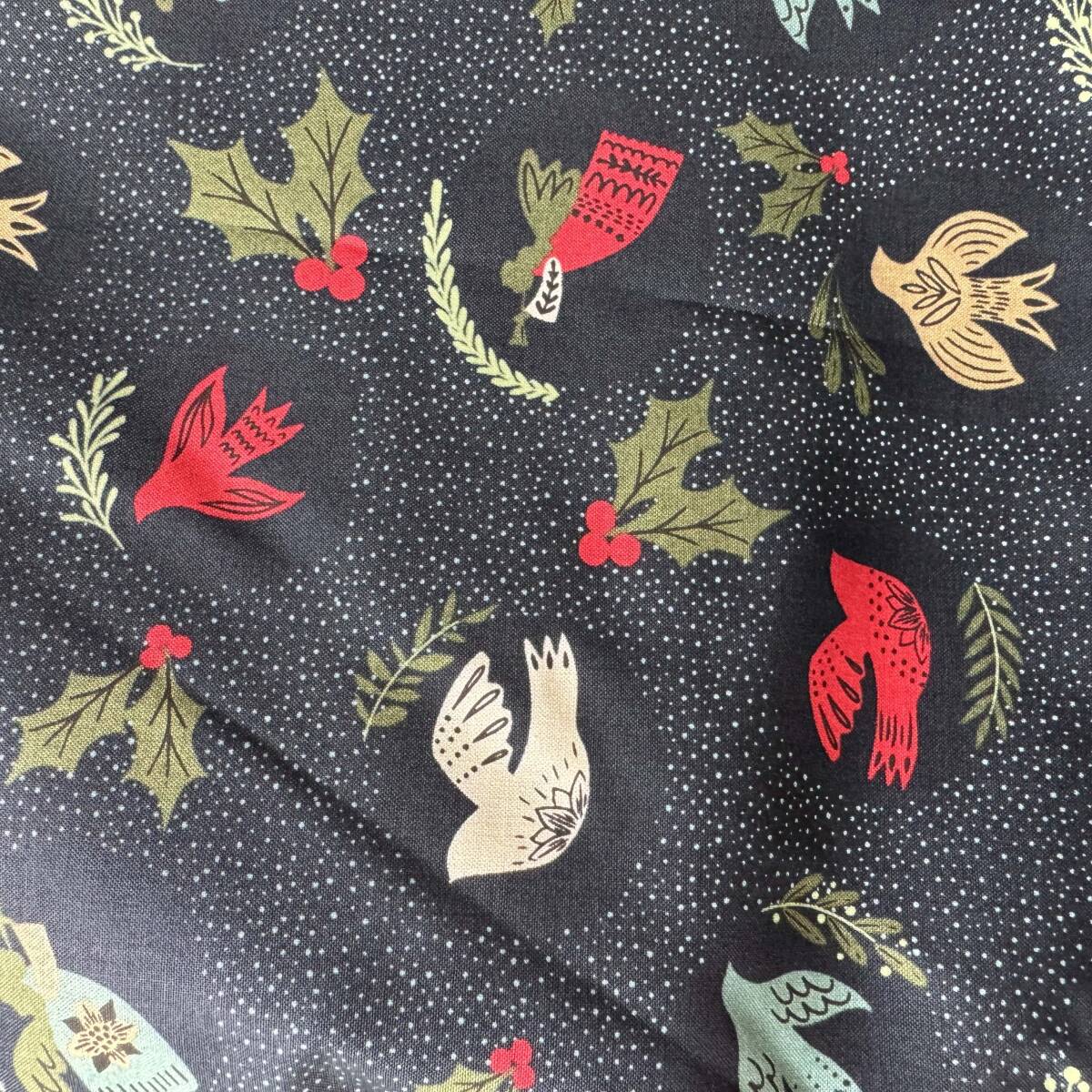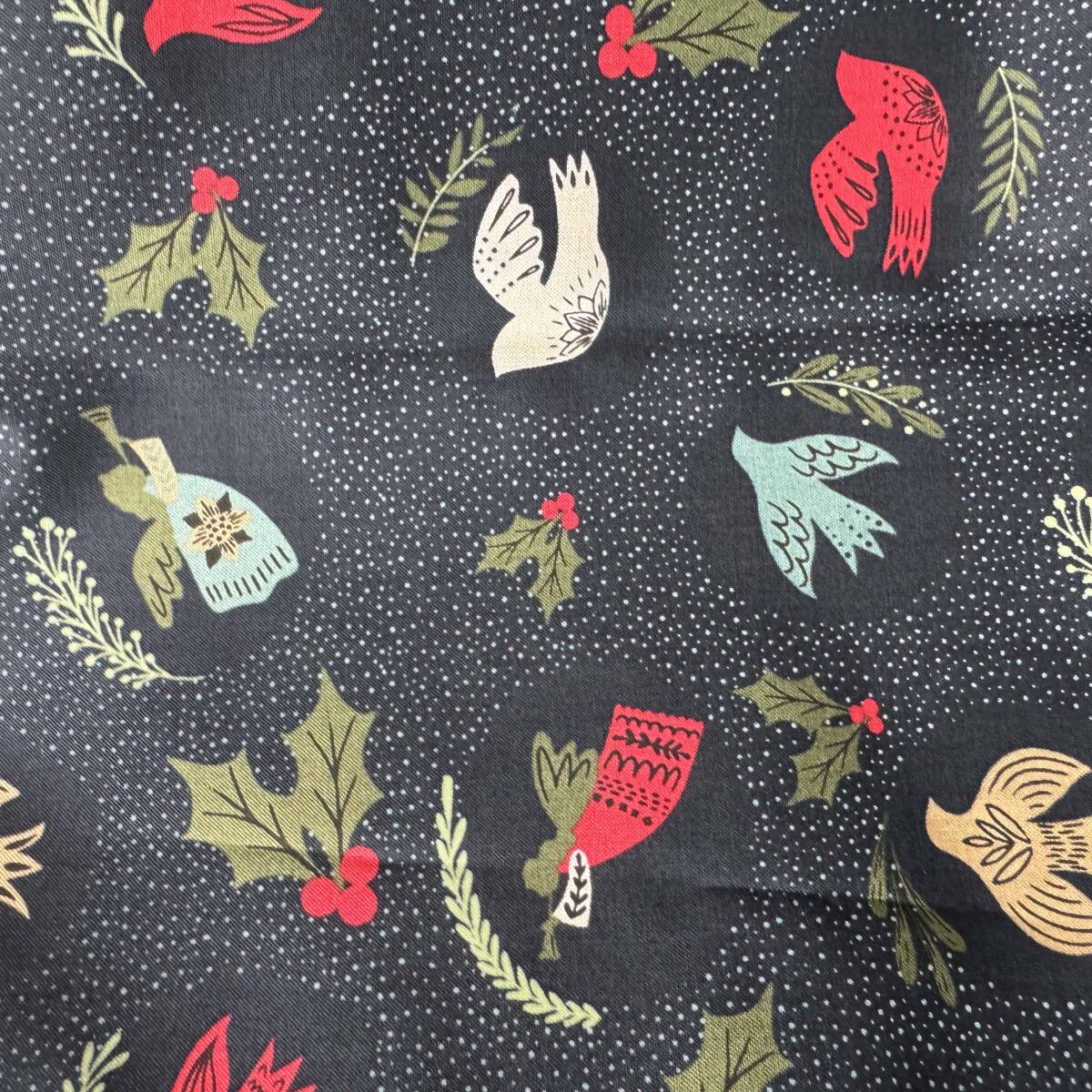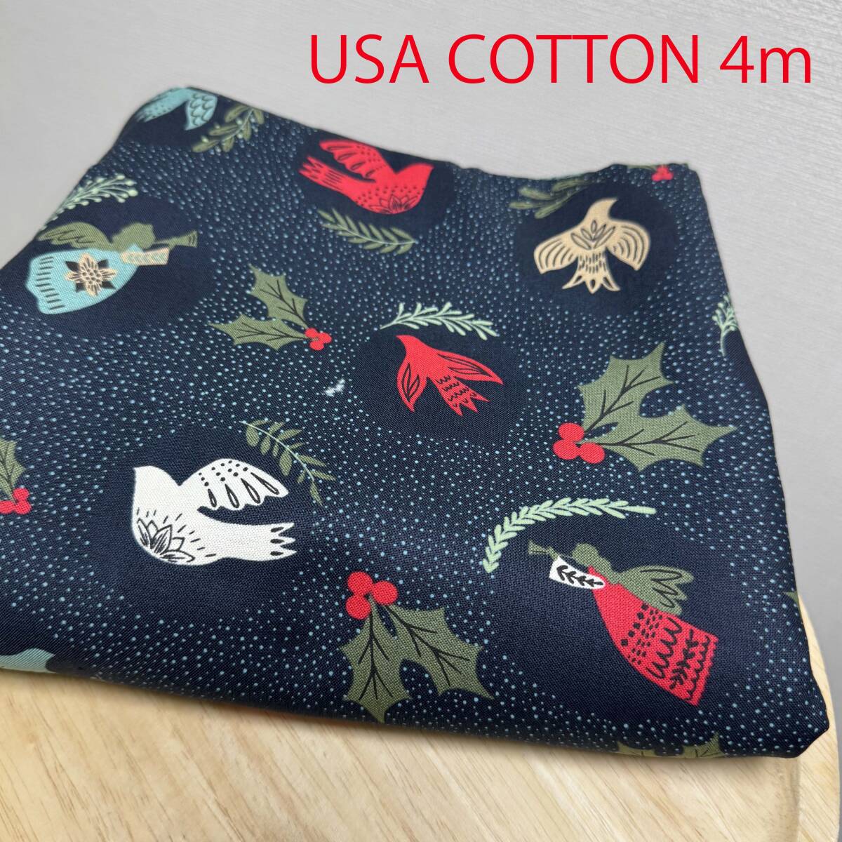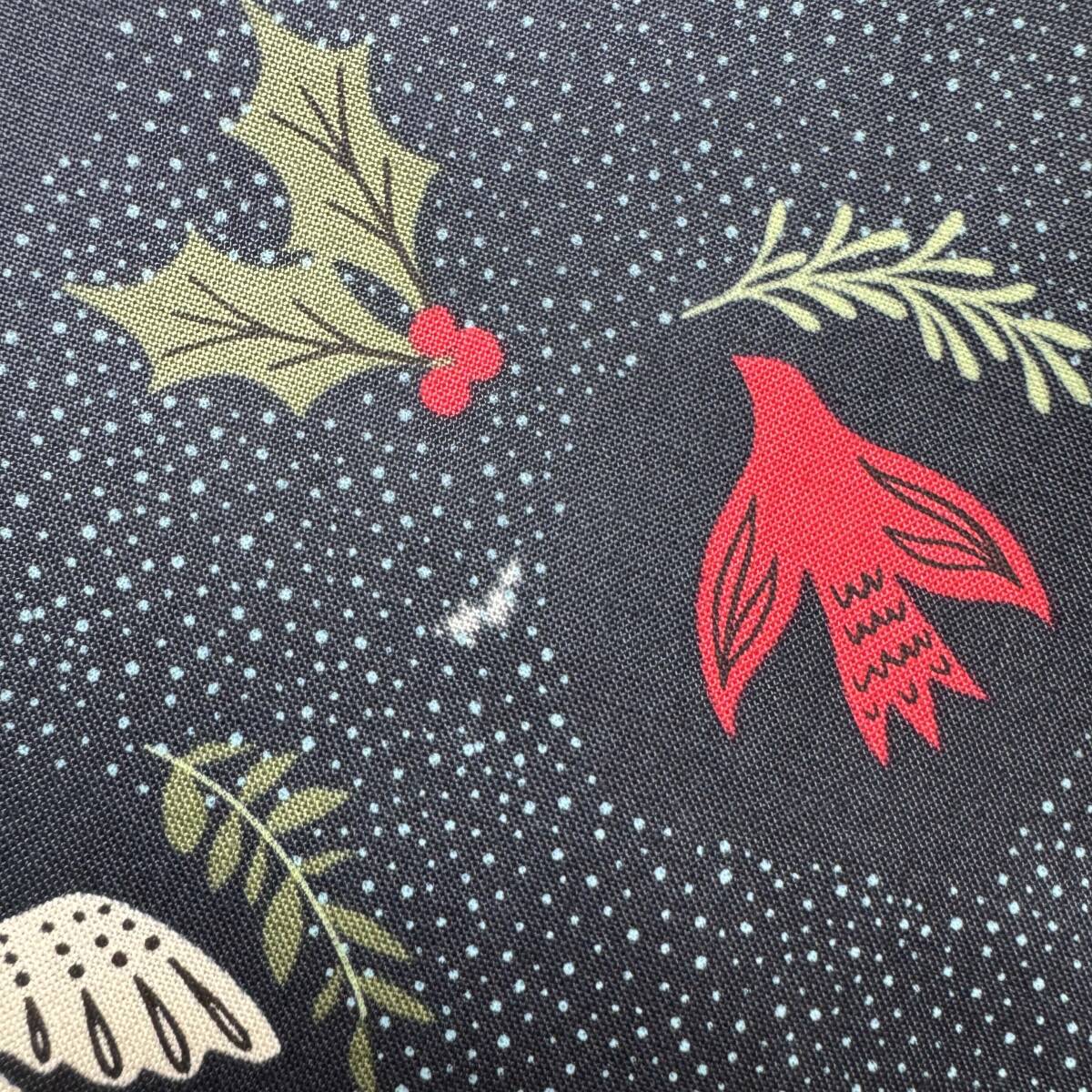 【4m】モダmoda鳥とヒイラギ柄★黒地クリスマスのモチーフ模様★生地【400cm】