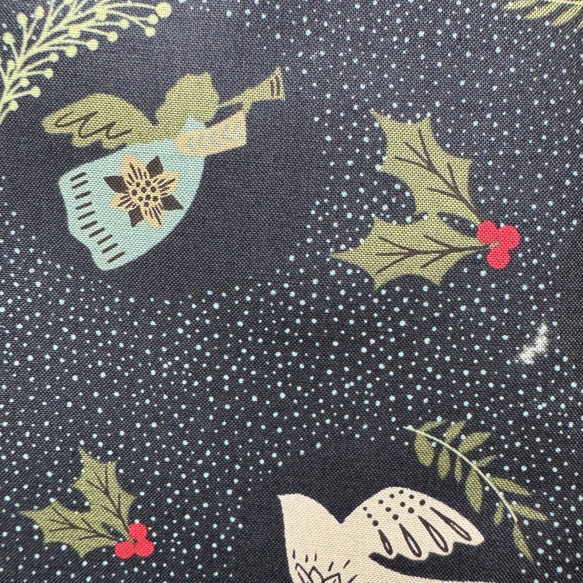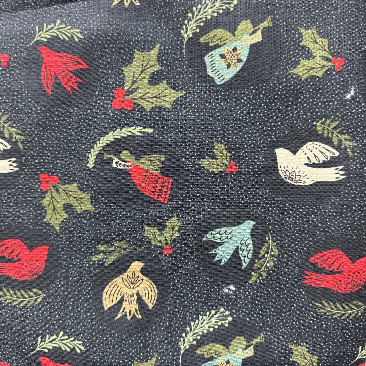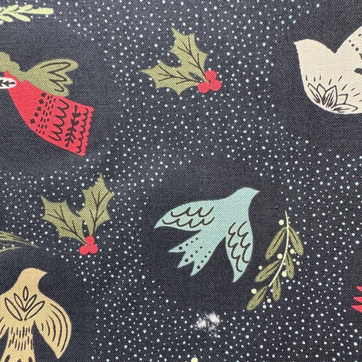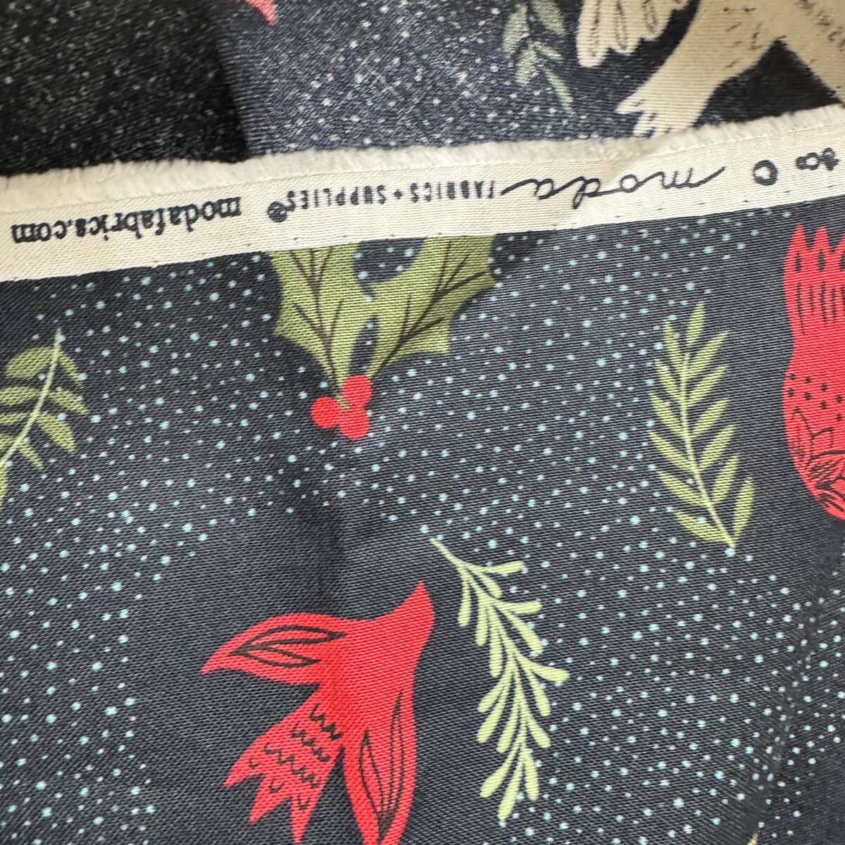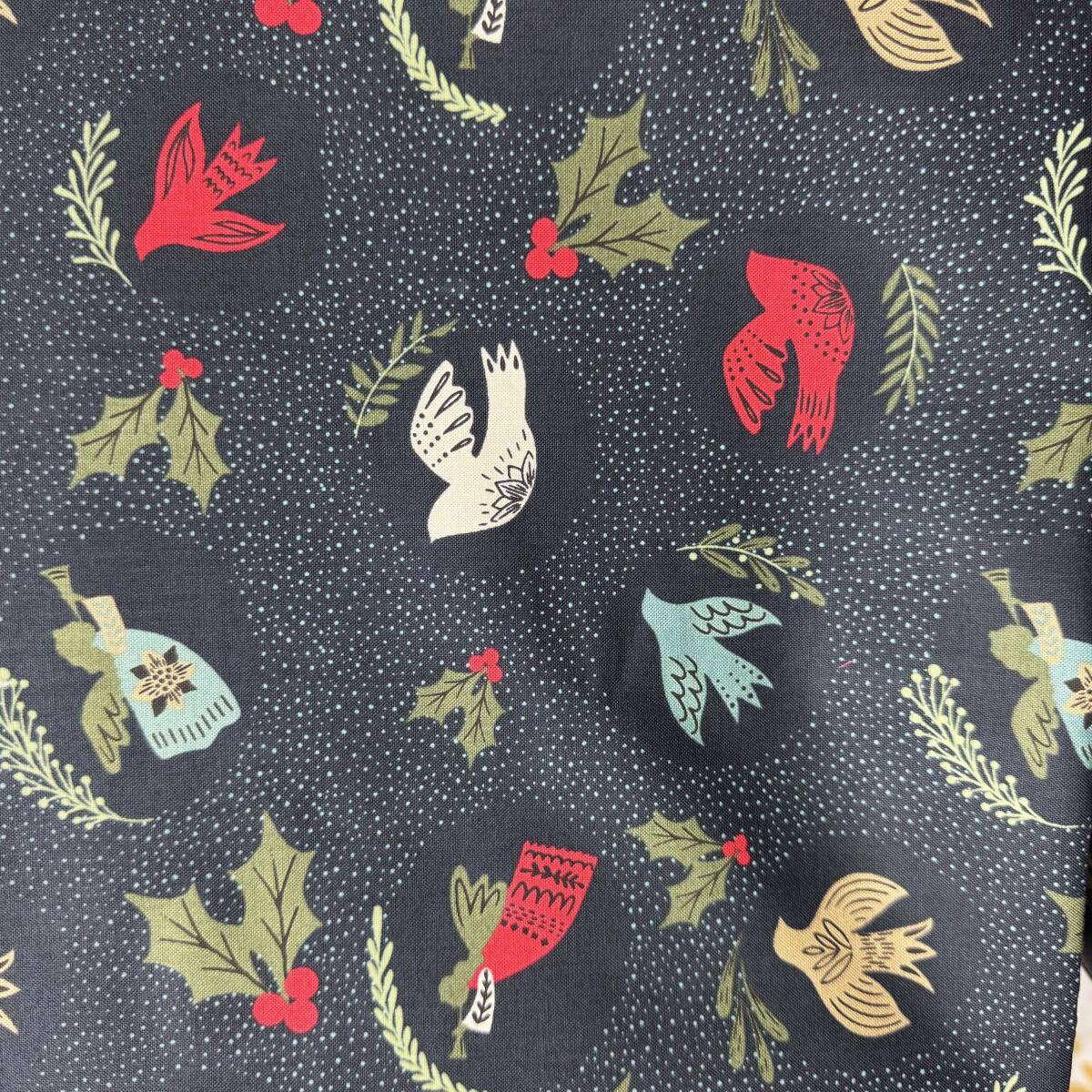 【4m】モダmoda鳥とヒイラギ柄★黒地クリスマスのモチーフ模様★生地【400cm】