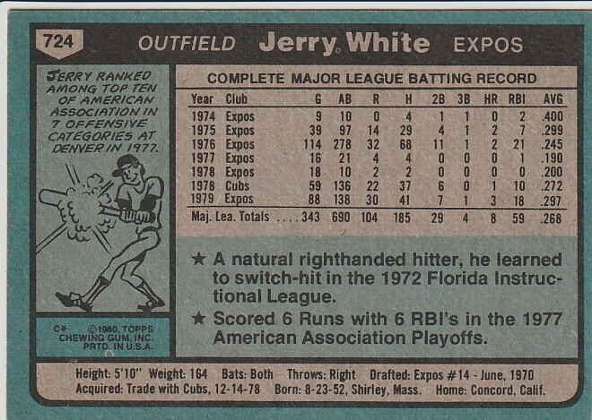来日外国人 西武 大洋 ホワイト 1980 Topps 724