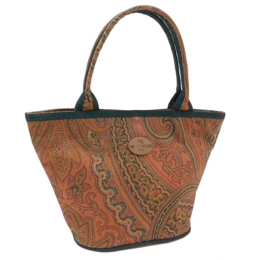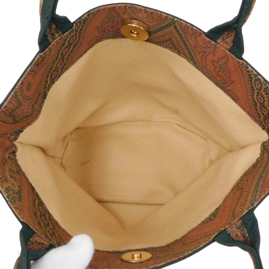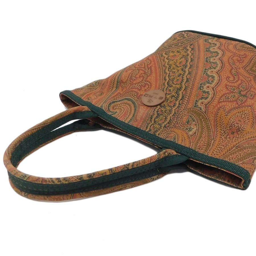 1円■ 美品/エトロ/ハンドバッグ/ブラウン×グリーン系/ナイロン/ペイズリー柄/おでかけ/普段使い/ETRO ■E.Aer.tI-04[中古]