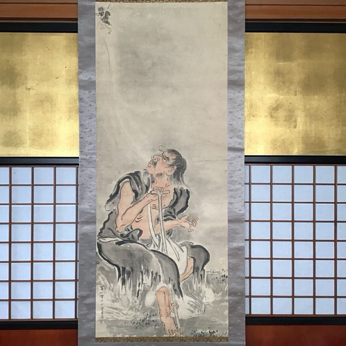 商品名:【真作】蔵出し【英一蝶『蝦蟇仙人之図』大幅 紙本 肉筆 日本画 中国画 合箱】