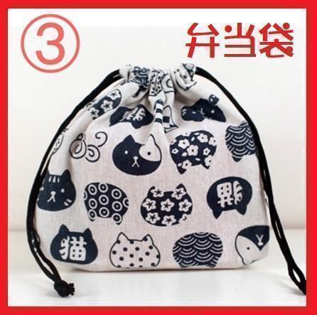 ③ 新品 お弁当袋 猫柄 弁当バッグ 巾着 ランチバック