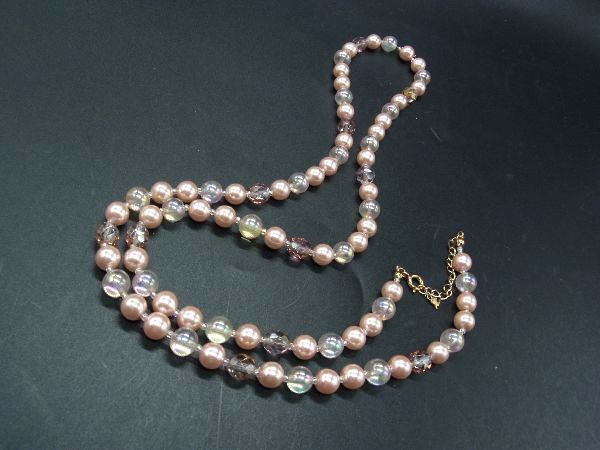 ■美品■ courreges クレージュ パール ビーズ ネックレス ペンダント アクセサリー レディース ピンク系×シルバー系 DH2137