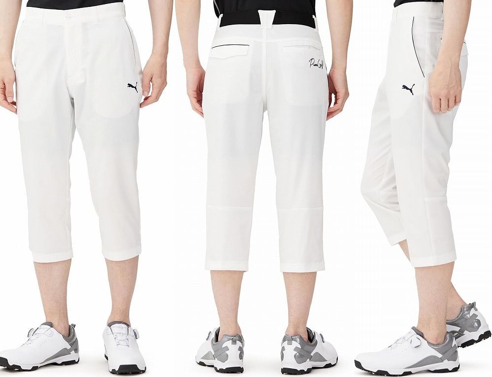 新品 Lサイズ プーマ ゴルフ PUMA 春夏 ハーフパンツ 7部丈 クロップド ストレッチ 形状回復 白 ホワイト クロップド