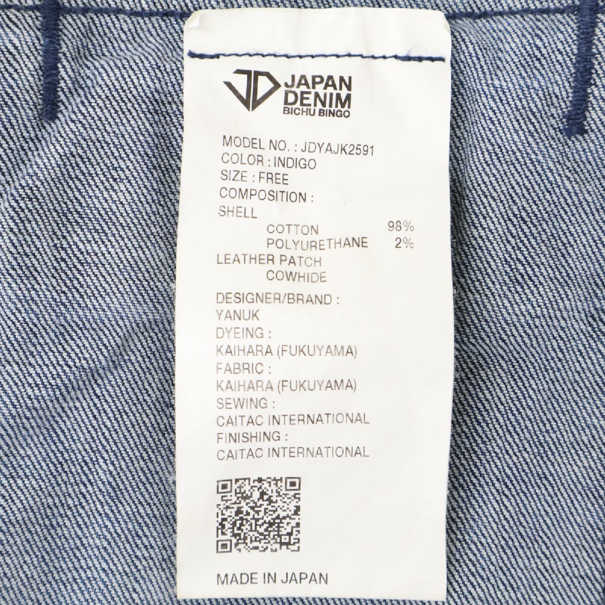 商品名 ヤヌーク JAPAN DENIM インディゴ ワイドスリーブ ショートジャケットジャケット