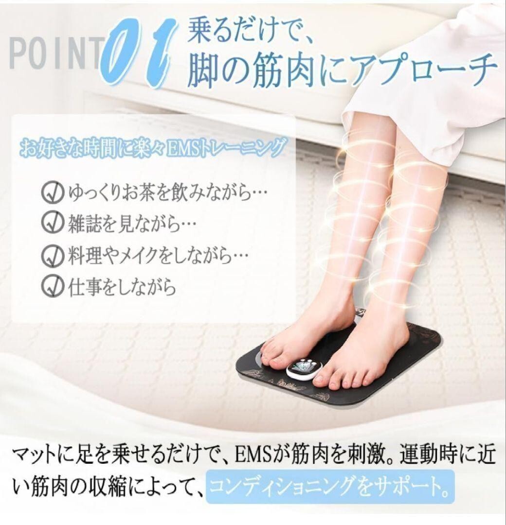 「外を歩くのは大変。気軽に家の中で足をケア」「女性やご年配向けの手軽な足用のEMSはないの?」「立ち仕事が続いているのでスッキリしたい」 そんな方々へ・・・楽々足の”ながらケア”! シリコン製の足用EMSフットマットが登場です! 使い方は簡単!マットに乗ってスイッチをONするだけ!EMS電気刺激が普段あまり動かさない筋肉の奥深くまで刺激。
