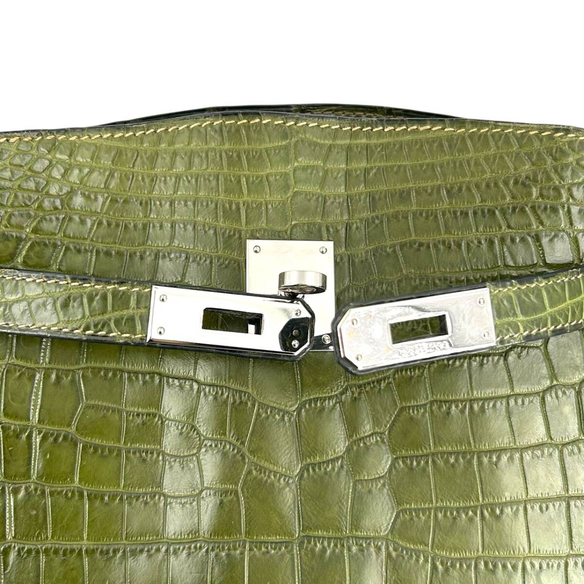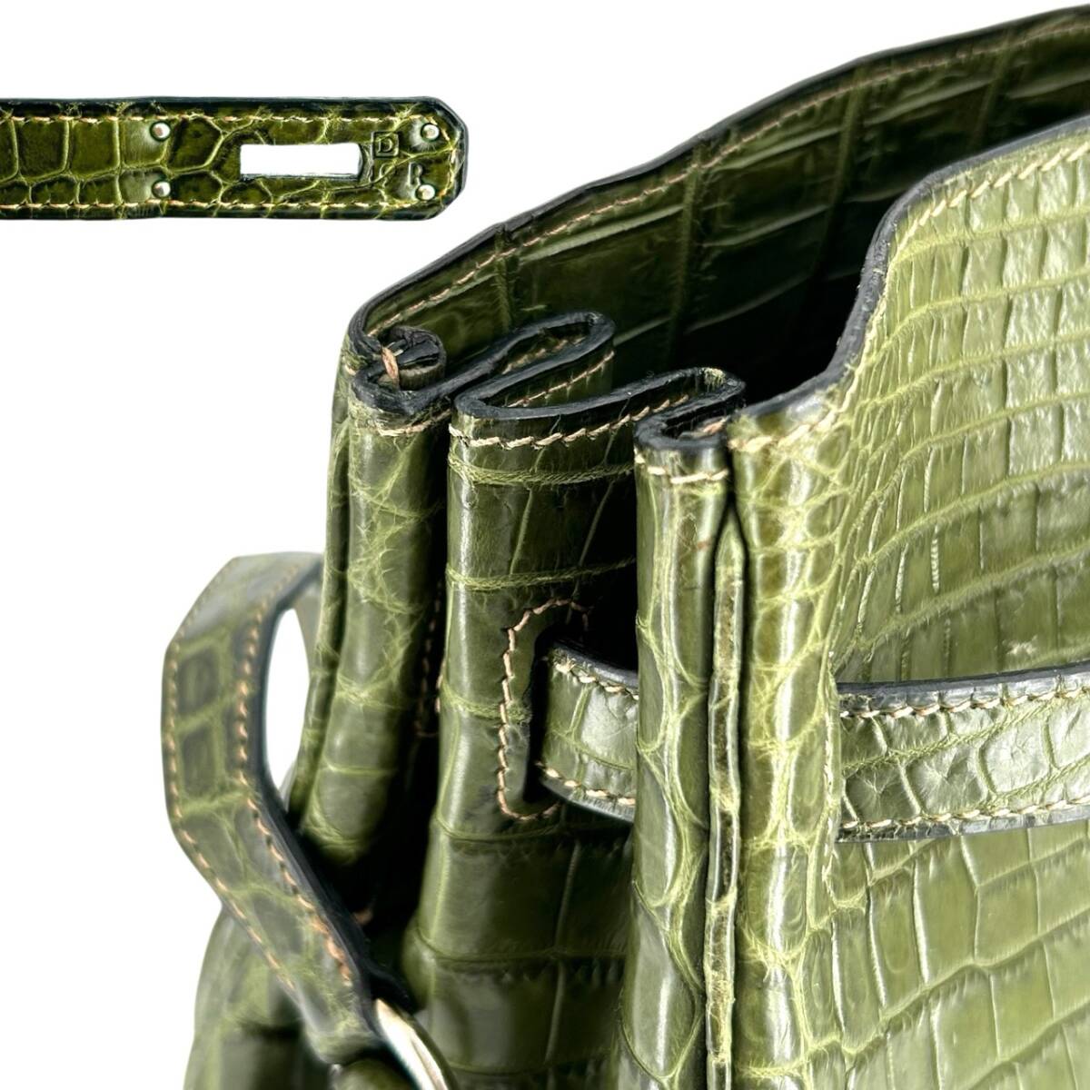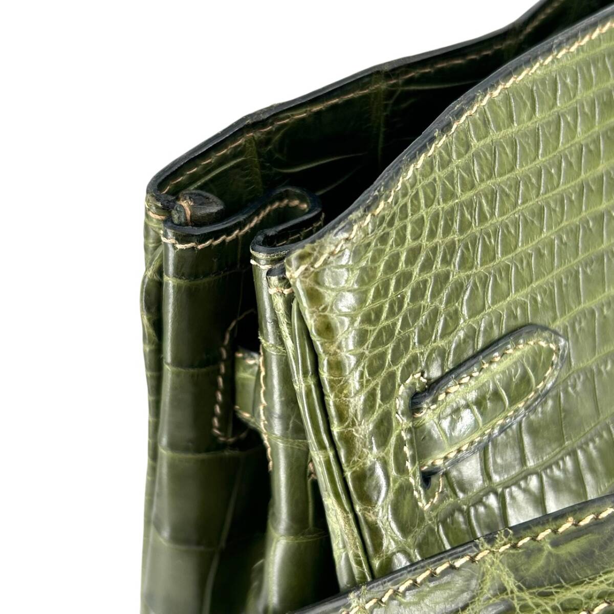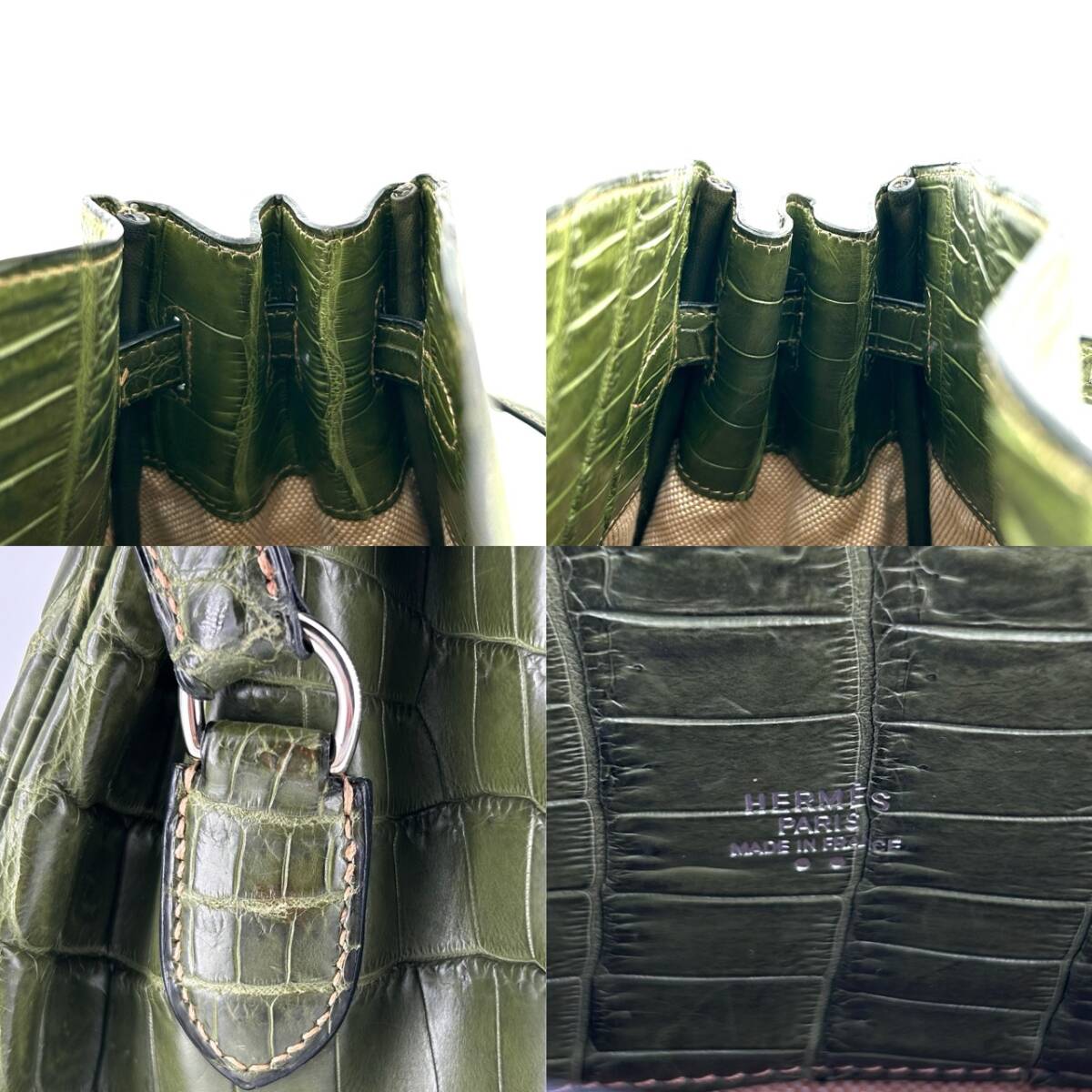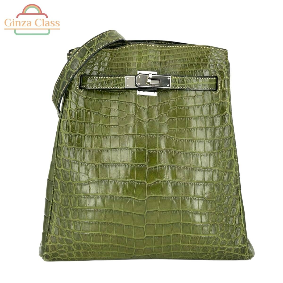 【管理番号】100706 【ブランド】HERMES 【モデル】ケリースポーツMM 【素材】ニロティカスマット 【カラー】グリーン系 【サイズ】横幅(W):約25.5cm 高さ(H):約25.5cm マチ(D):約12.5cm ショルダー高さ:約41.5cm 【刻印】 □R刻印(2014年) 【付属品】弊社販売証明書 【状態】AB+(中古) 【特記事項】外側は全体的に清潔感があり、目立った傷や汚れはございません。エッジや四隅の擦れもごく僅かで、ほとんど気にならない程度です。わずかな形崩れや照り、金具部分には小さな傷が見受けられますが、使用感としては軽微です。内側も全体的に非常に清潔で、ショルダーストラップにも目立つ折れ跡はございません。中古品の中でも特におすすめできるコンディションとなっておりますので、ぜひこの機会にご検討くださいませ。 | |