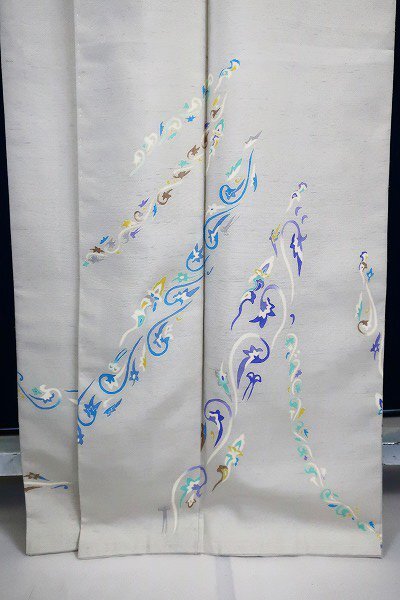 ライトグレーの紬地に唐草花が描かれた付け下げです。 淡い色合いにお洒落な柄行の一枚です。 未使用品です。 ※パールトーン加工済です。 担当:伊藤 |