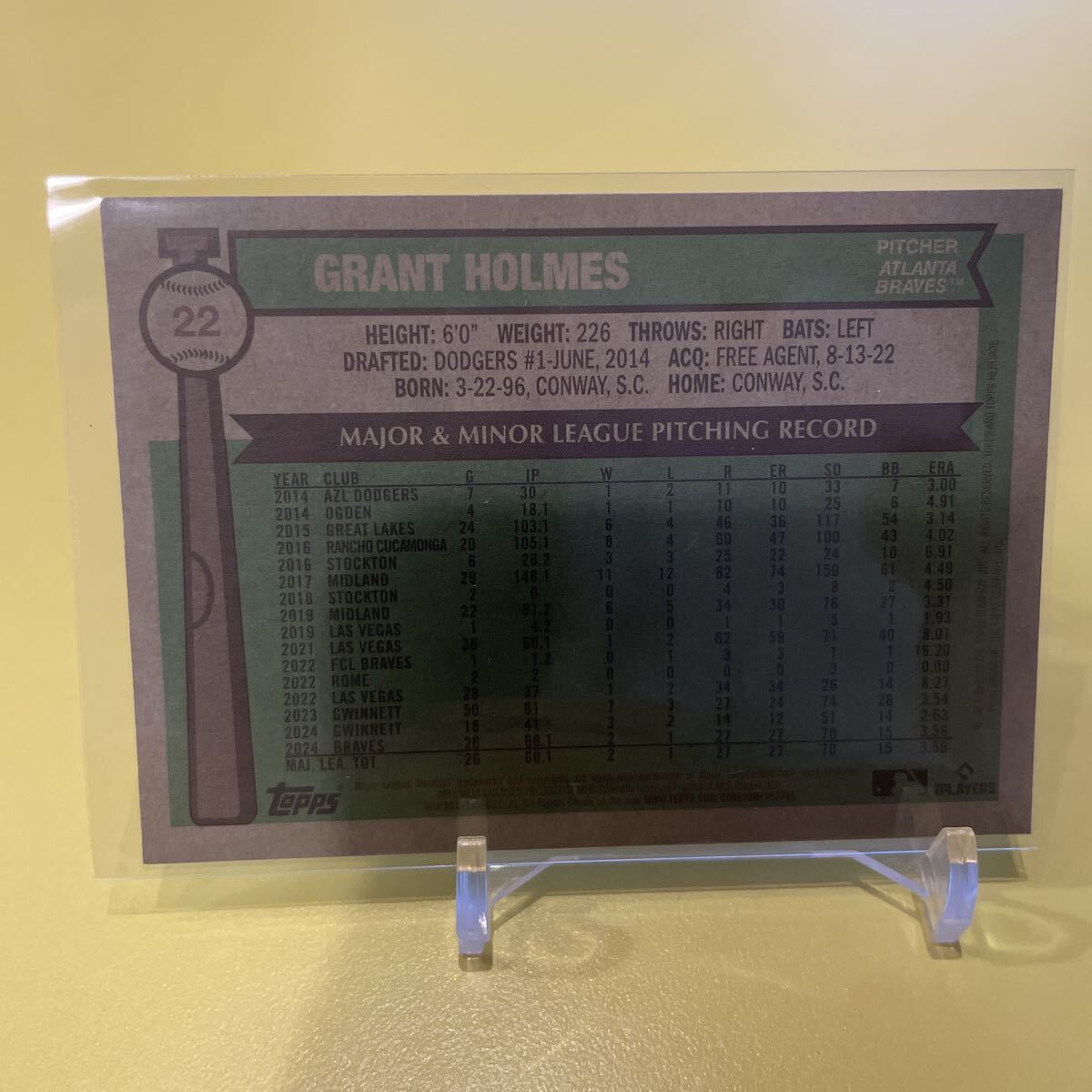2025 Topps Heritage#22 Grant HolmesChrome Aqua SparkleRefractor RC Braves MLB baseballカード