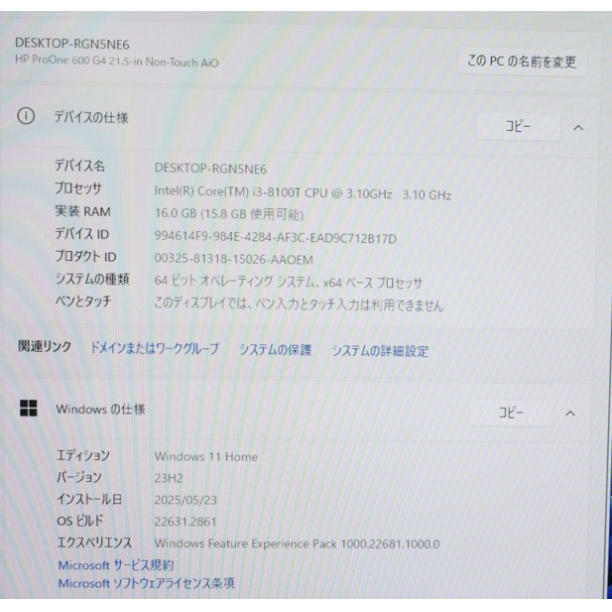 美品★ - HP その他 Pro One 600G4 AIO (B855)