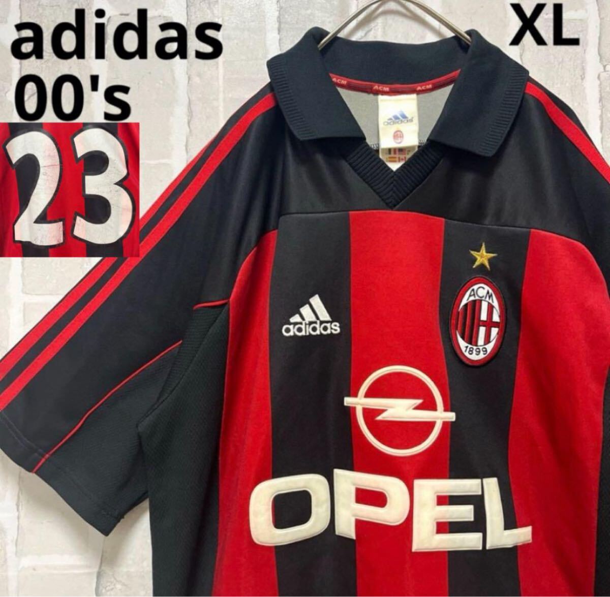 adidas アディダス イタリア セリエA ACミラン ゲームシャツ ユニフォーム サッカーシャツ サイズXL 刺繍ロゴ ワッペン パフォーマンスロゴ 半袖 3ライン 3ストライプ 00-02 00s イタリア製 オーセンティック 襟付き 送料無料の出品です。