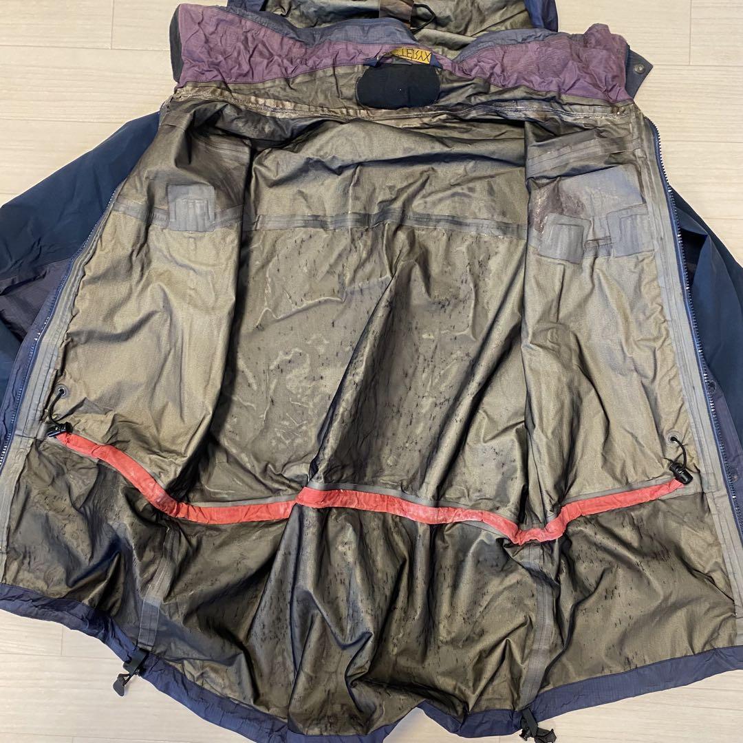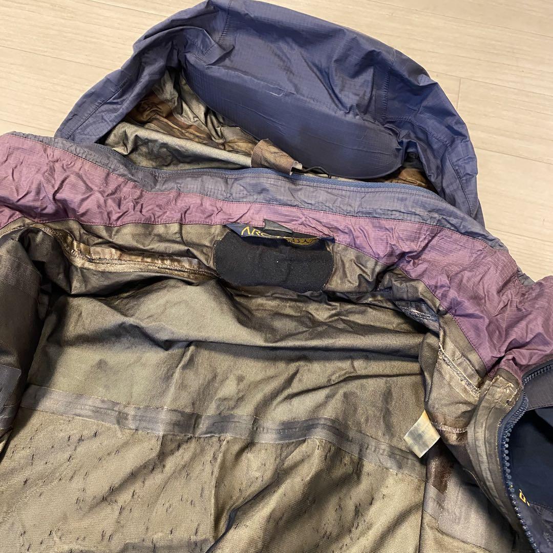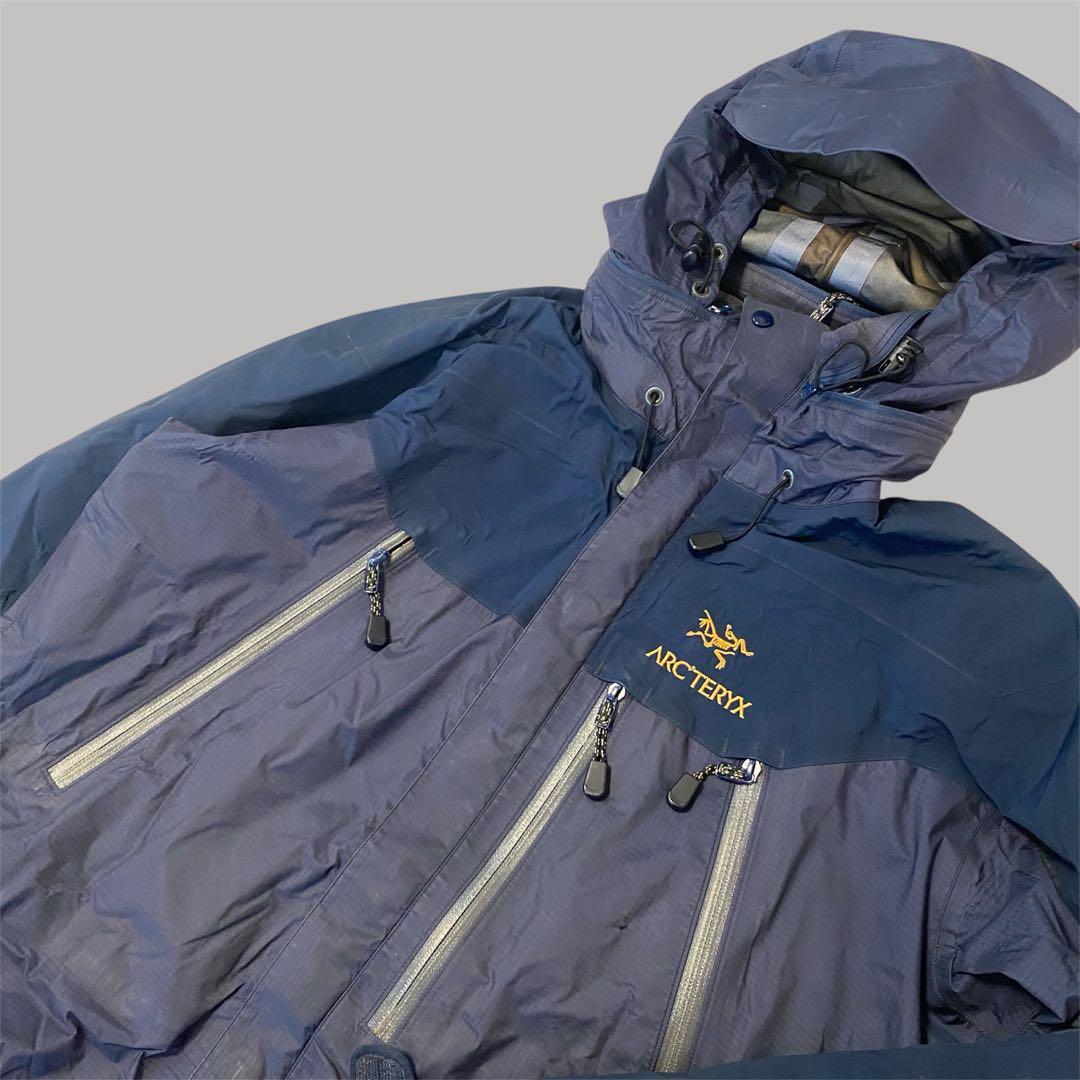 初期金刺繍ロゴ、クラシックなゴアテックスの刺繍、鮮やかな2トーンカラーが特徴のアークテリクスハイスペックジャケット。今でこそ無駄を削ぎ落としたミニマルなデザインですが、当時の最先端を詰め込んだカッティングデザインは山を求めるアルピニストに必要な機能性を備え、裾のダブつきやストレスフリーな首周りのデザインなど秀逸を極めます。