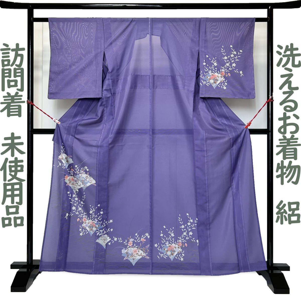 ★着物 単衣 訪問着 洗える 絽 未使用 手縫い フォーマル ブルーパープル  桔梗 金彩加工 仕立て上がり Mサイズ 送料無料★