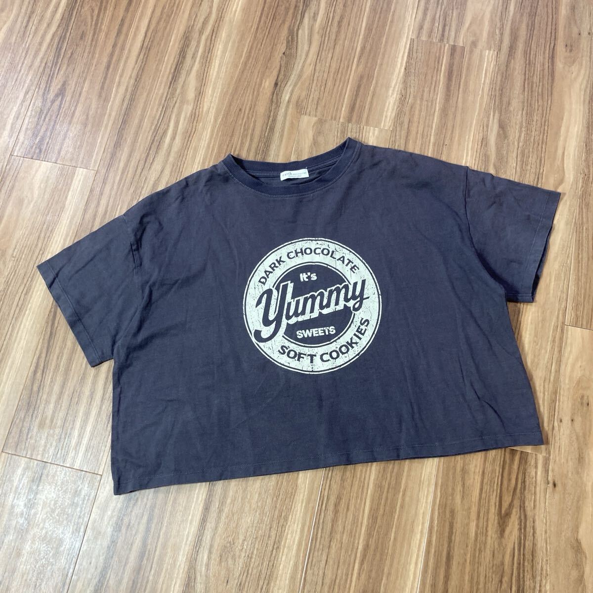 YT3668 earth music & ecology アーズミュージックアンドエコロジー 半袖Tシャツ サイズF チャコールグレー クロップド丈 オーバーサイズ