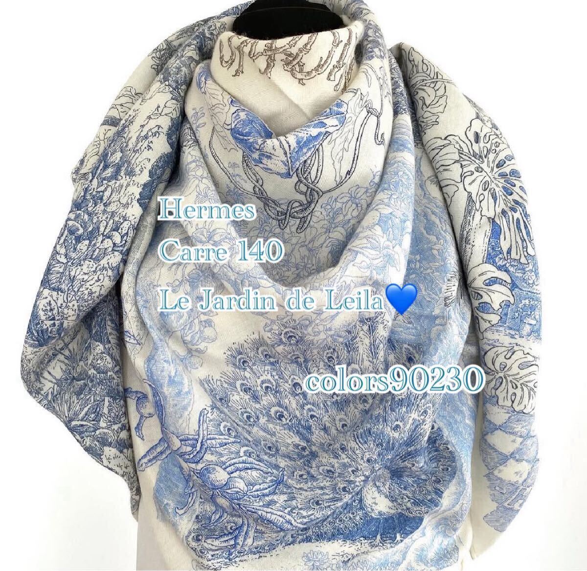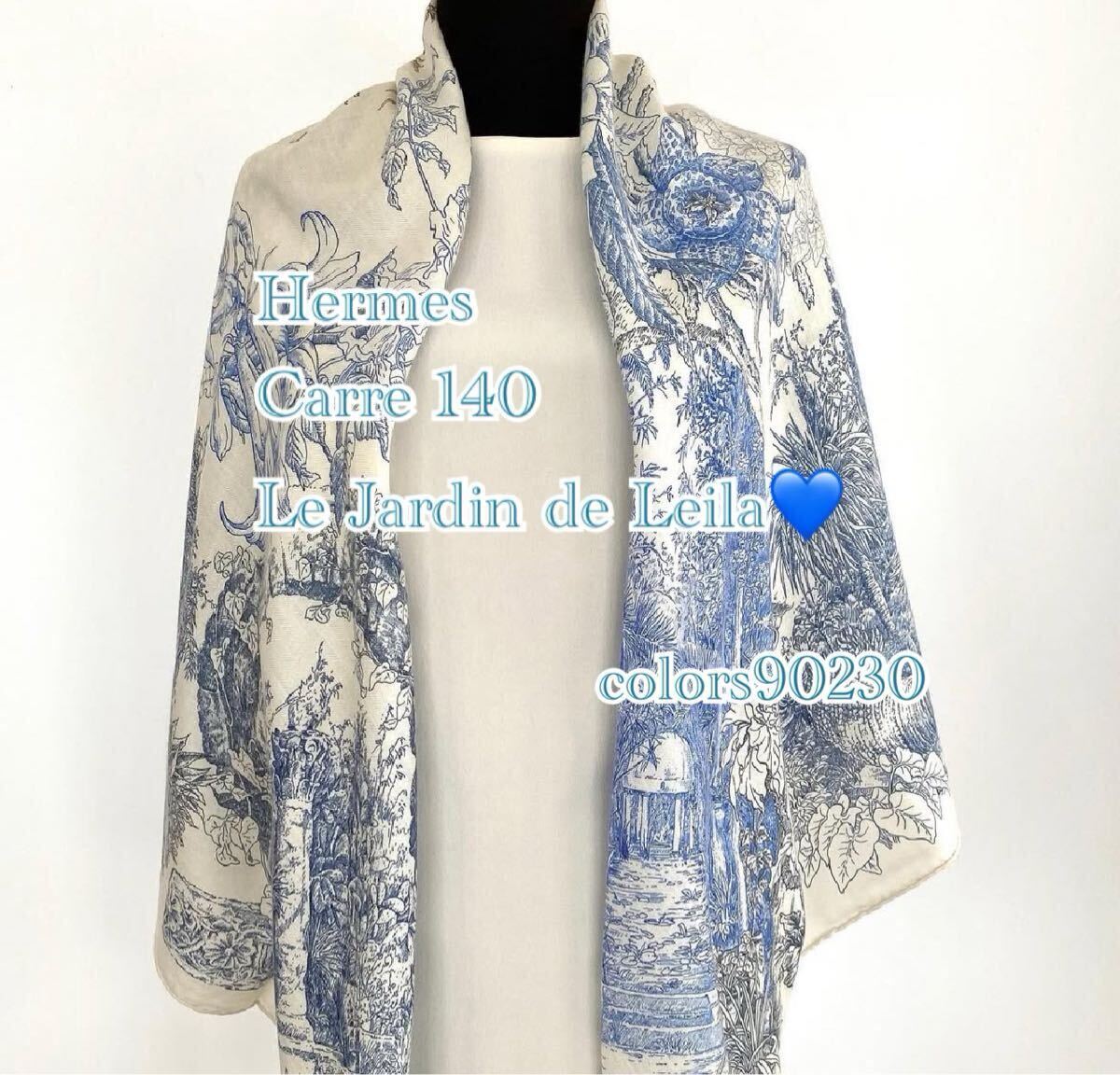 完売希少入手困難☆未使用 エルメス カレジェアン カシミヤシルク 大判スカーフ ストール カレ140 カシシル Le Jardin de Leila レアカラー