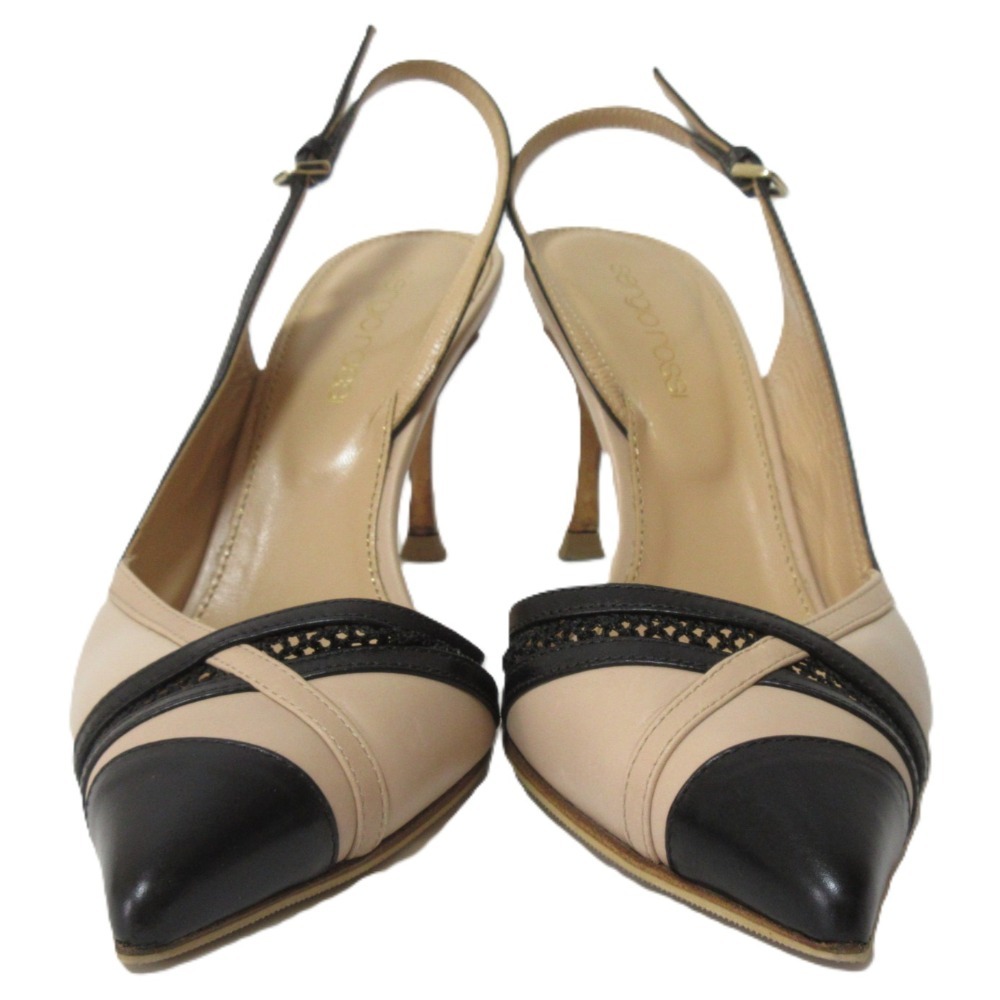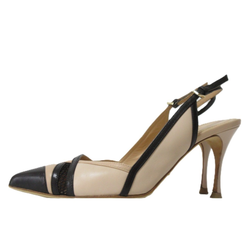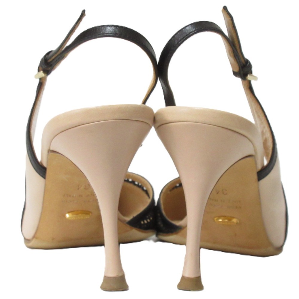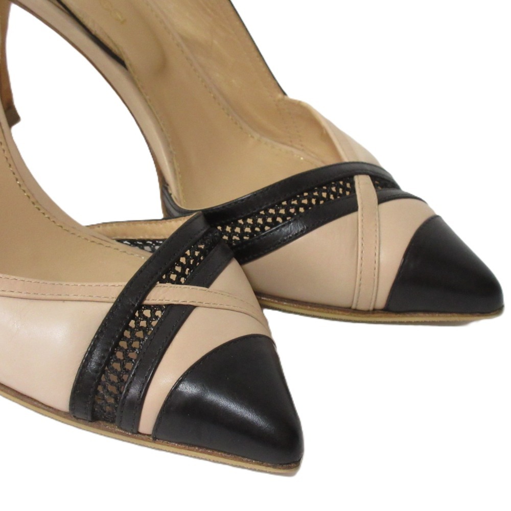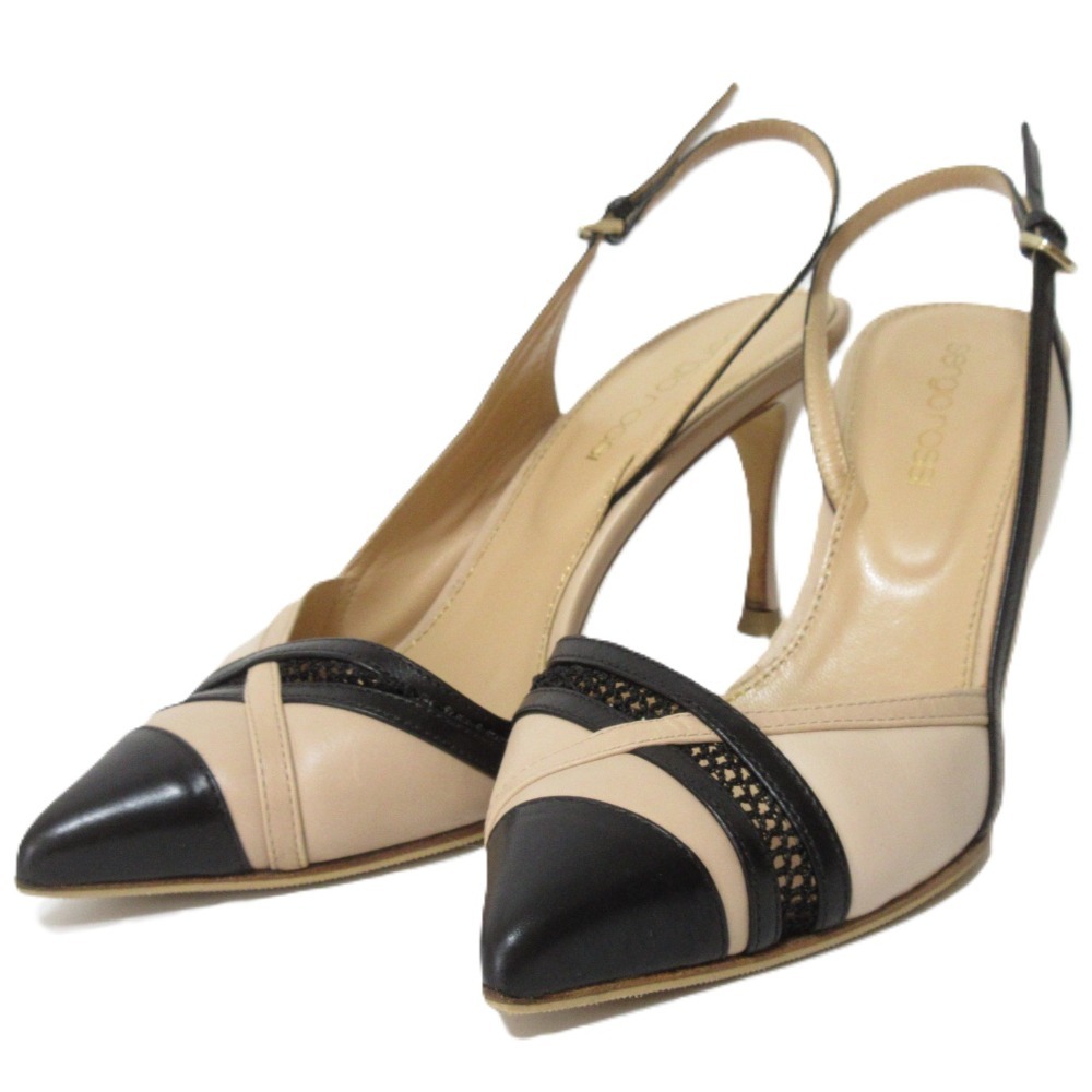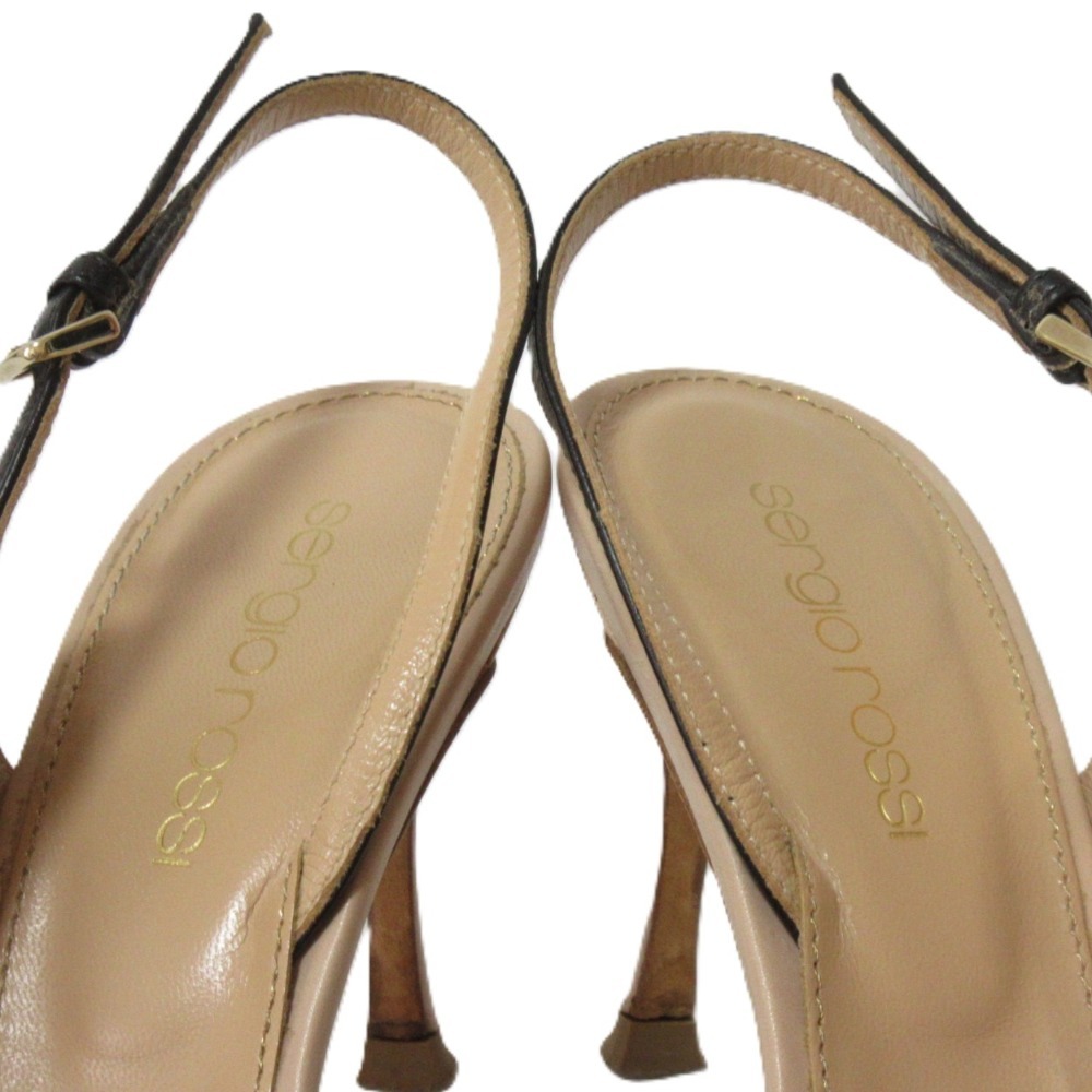 美品 Sergio Rossi セルジオロッシ レザー ポインテッドトゥ スリングバック パンプス 34 約21cm ブラック×ナチュラル