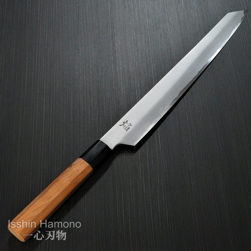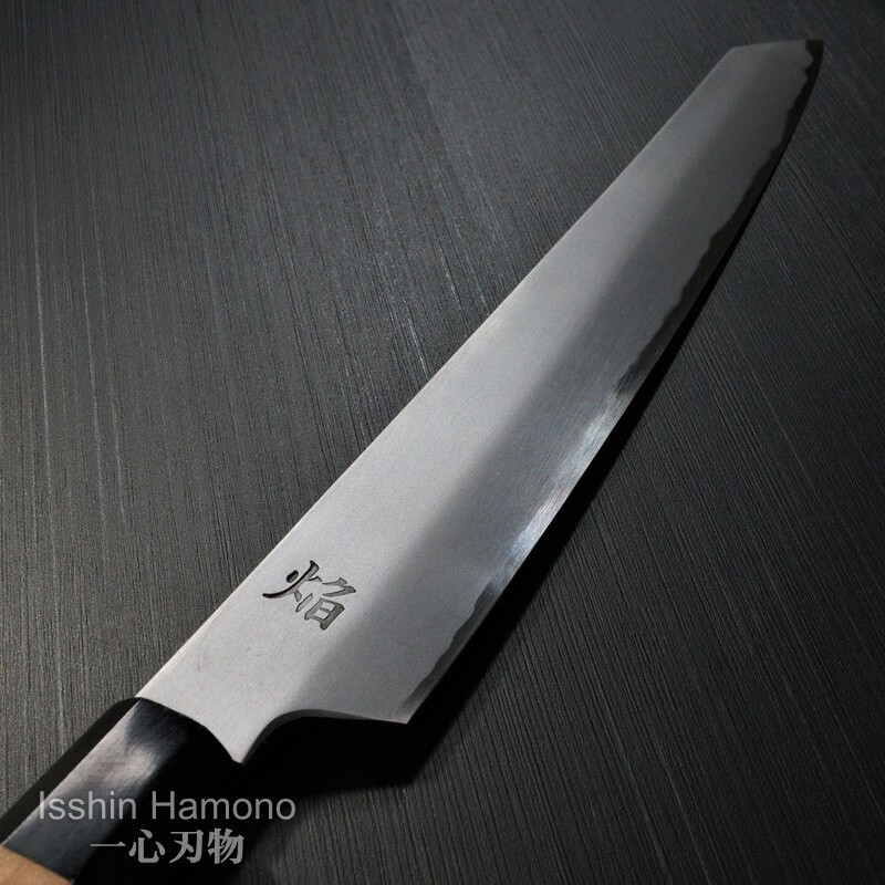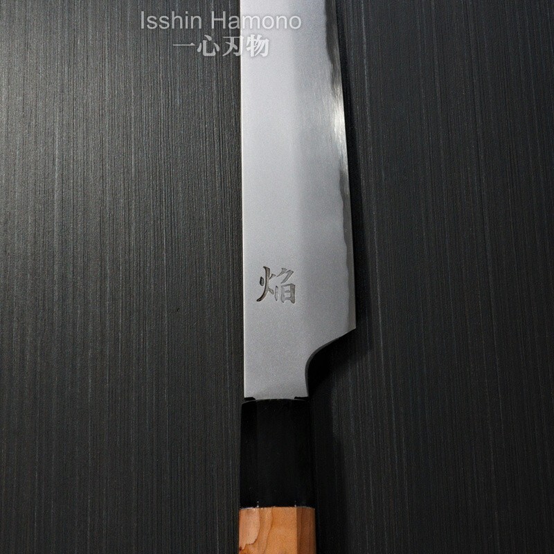 刃芯に深く打ち込まれた焔の刻印は激しく燃え上がる炎を表し、職人達の揺るぎない信念とプライドの証でもあります。
