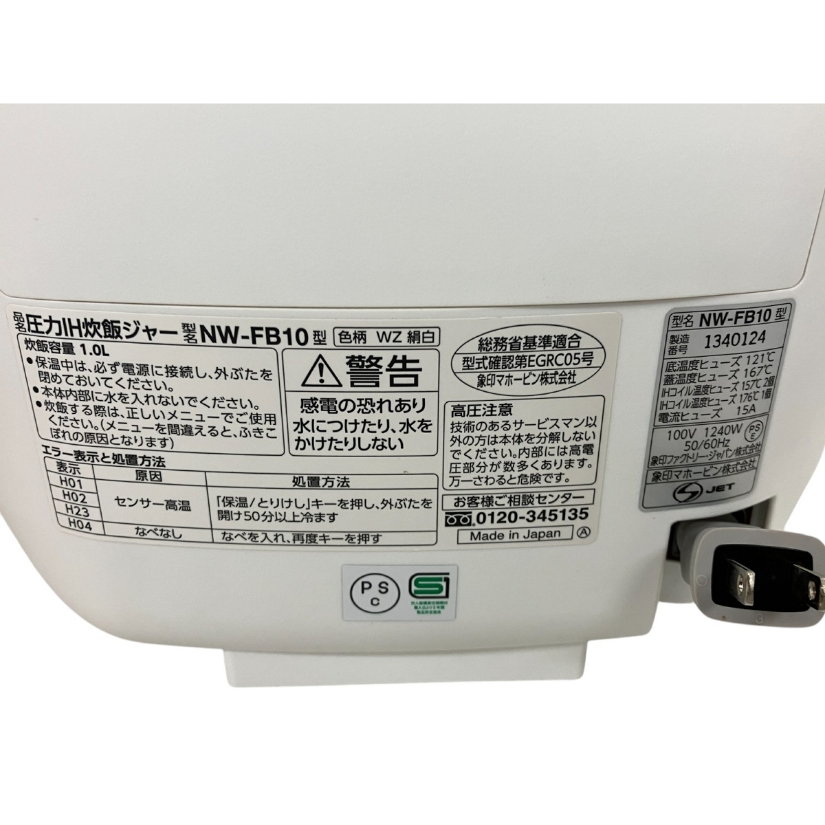 ZOJIRUSHI NW-FB10 炎舞炊き 5.5合 圧力IH炊飯ジャー 絹白 キッチン 家電 象印 中古 T10296338 |