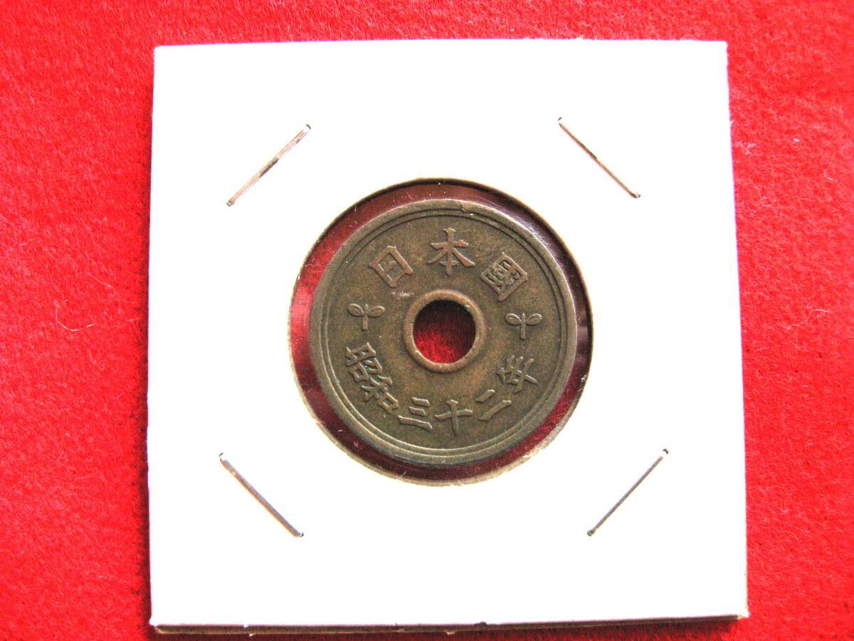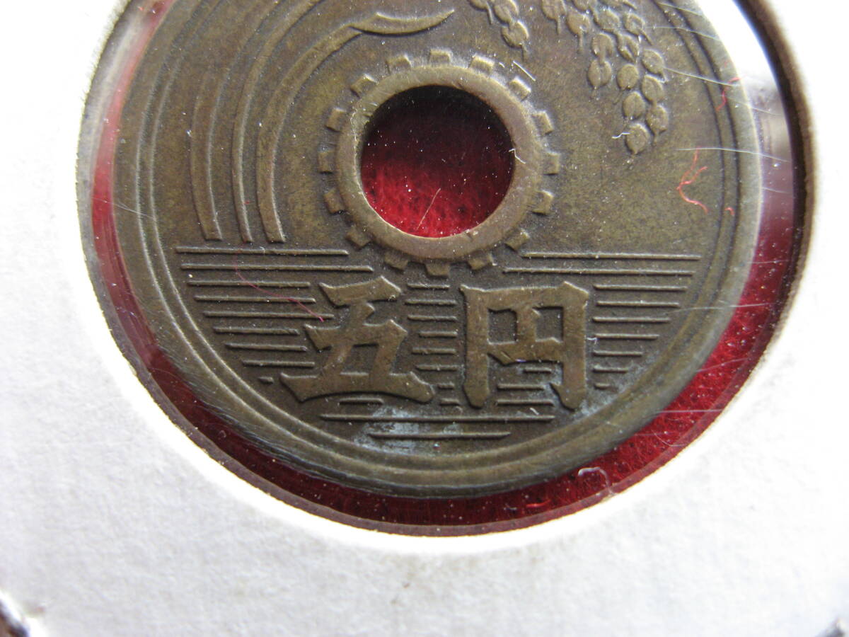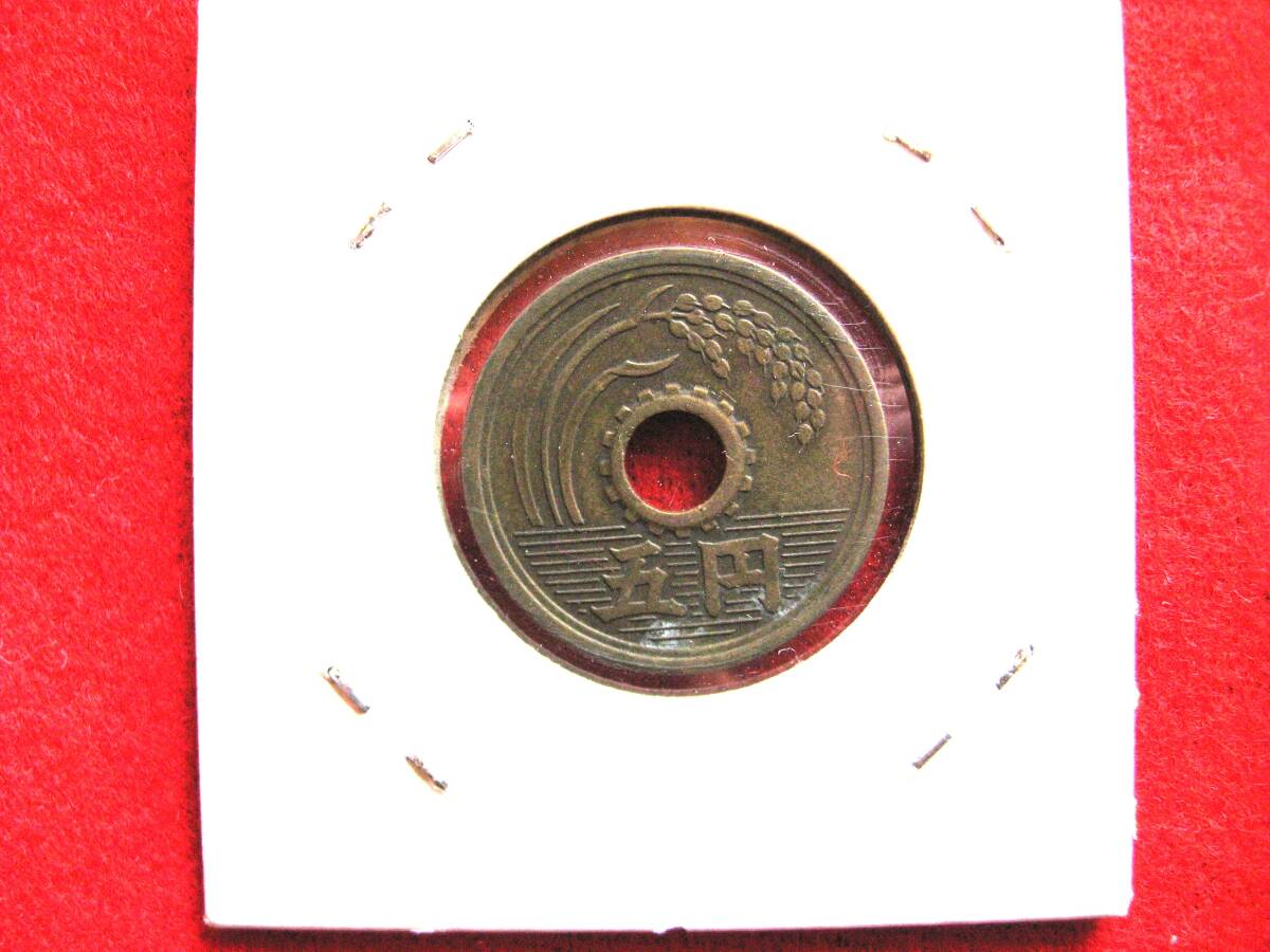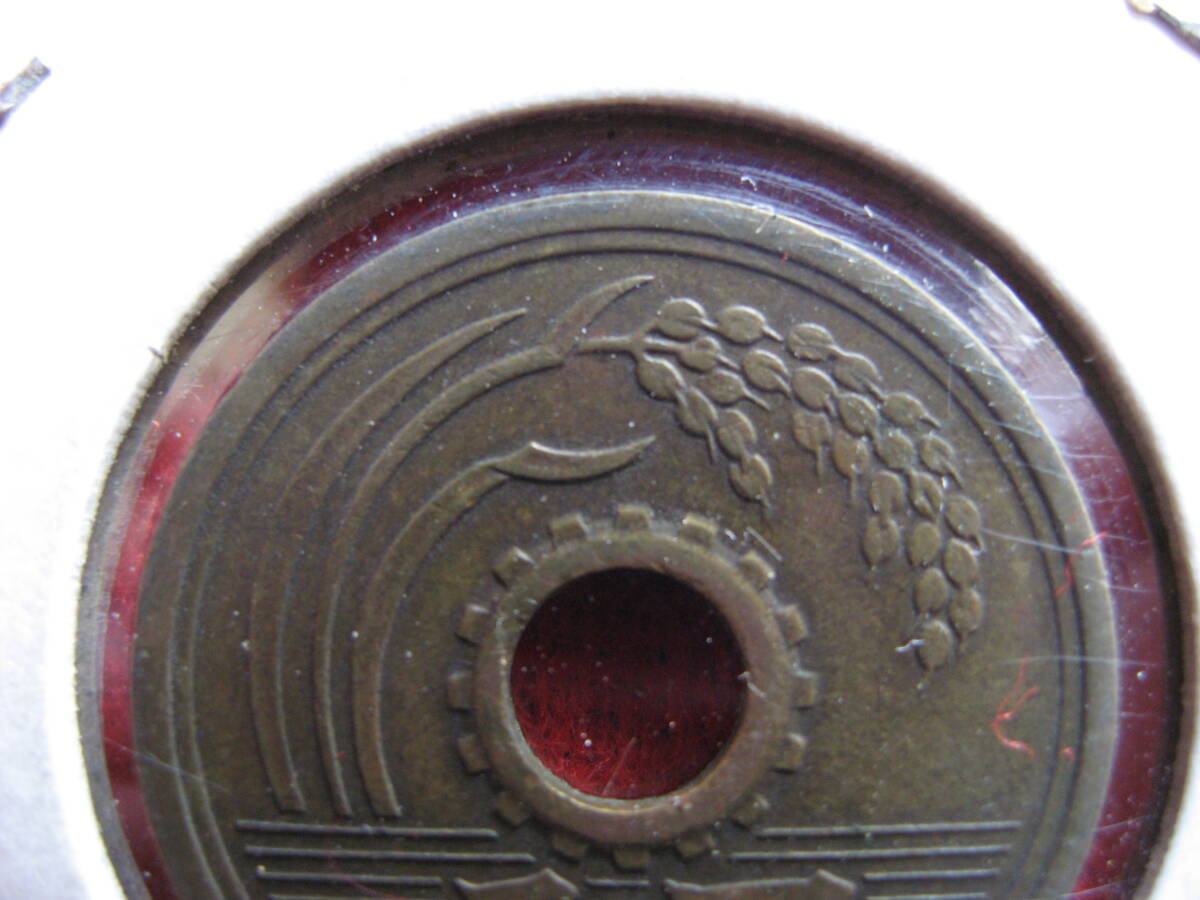 5円硬貨 黄銅貨 昭和32年 穴あり5円玉 フデ5 稲穂