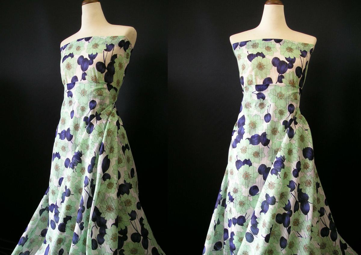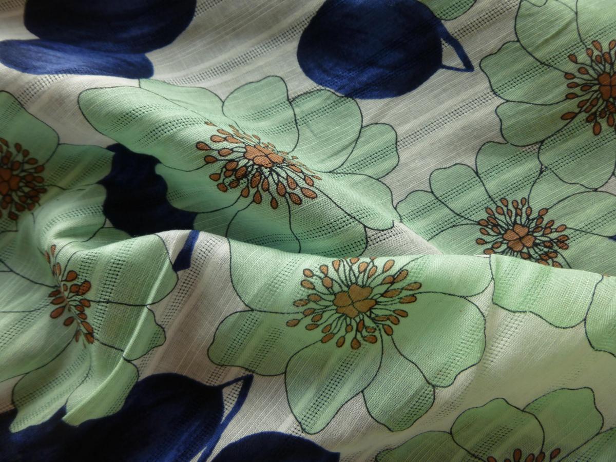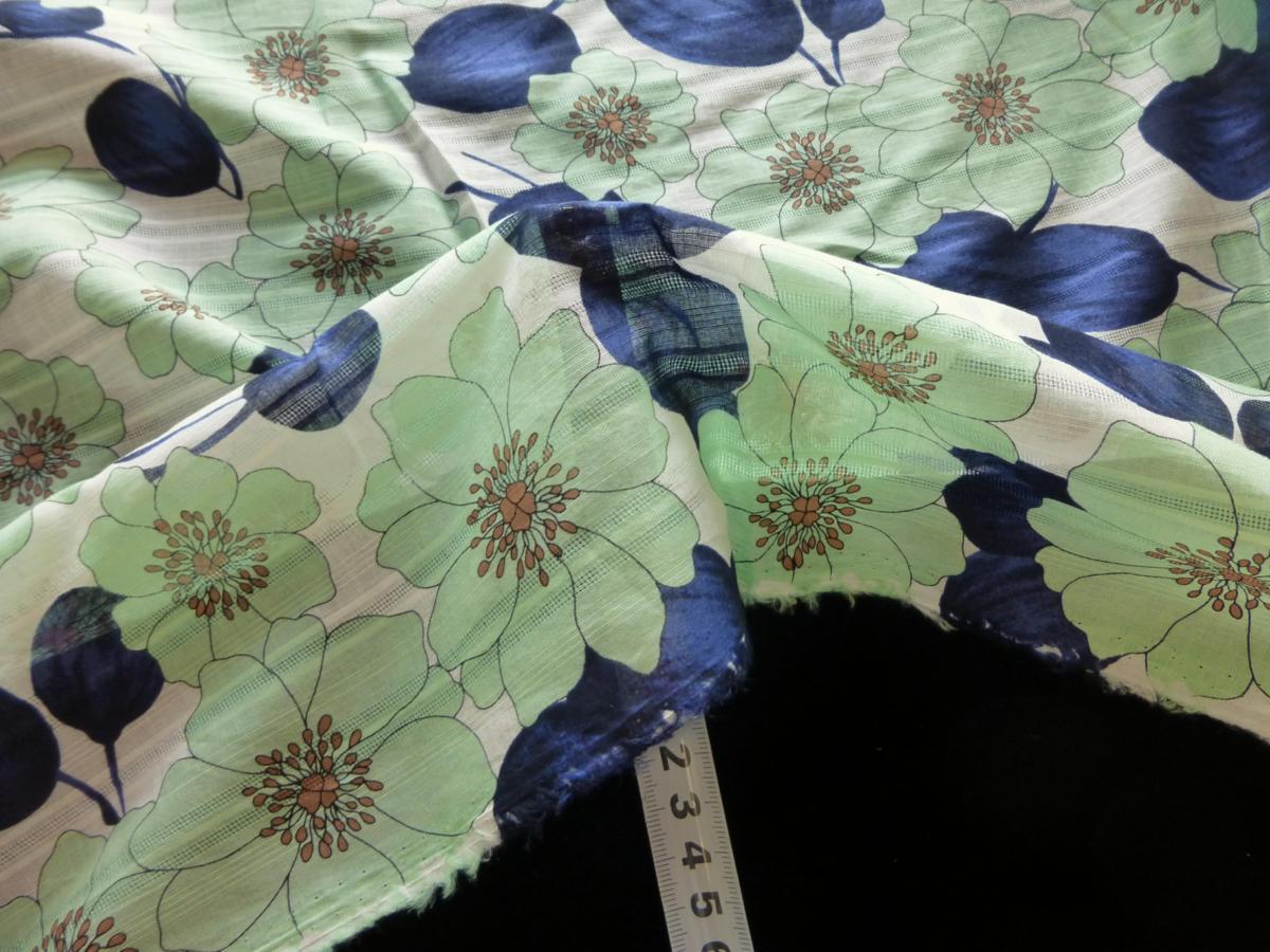 | 風合い お色 | 風合い:柔らか 光沢感:ありません 厚さ:薄地 色使い:ミント系 ボイル特有の透け感があります ストレッチ性はありません 柄:花柄 モニターの性格上実際の色目と多少異なる場合がございますがご了承ください |