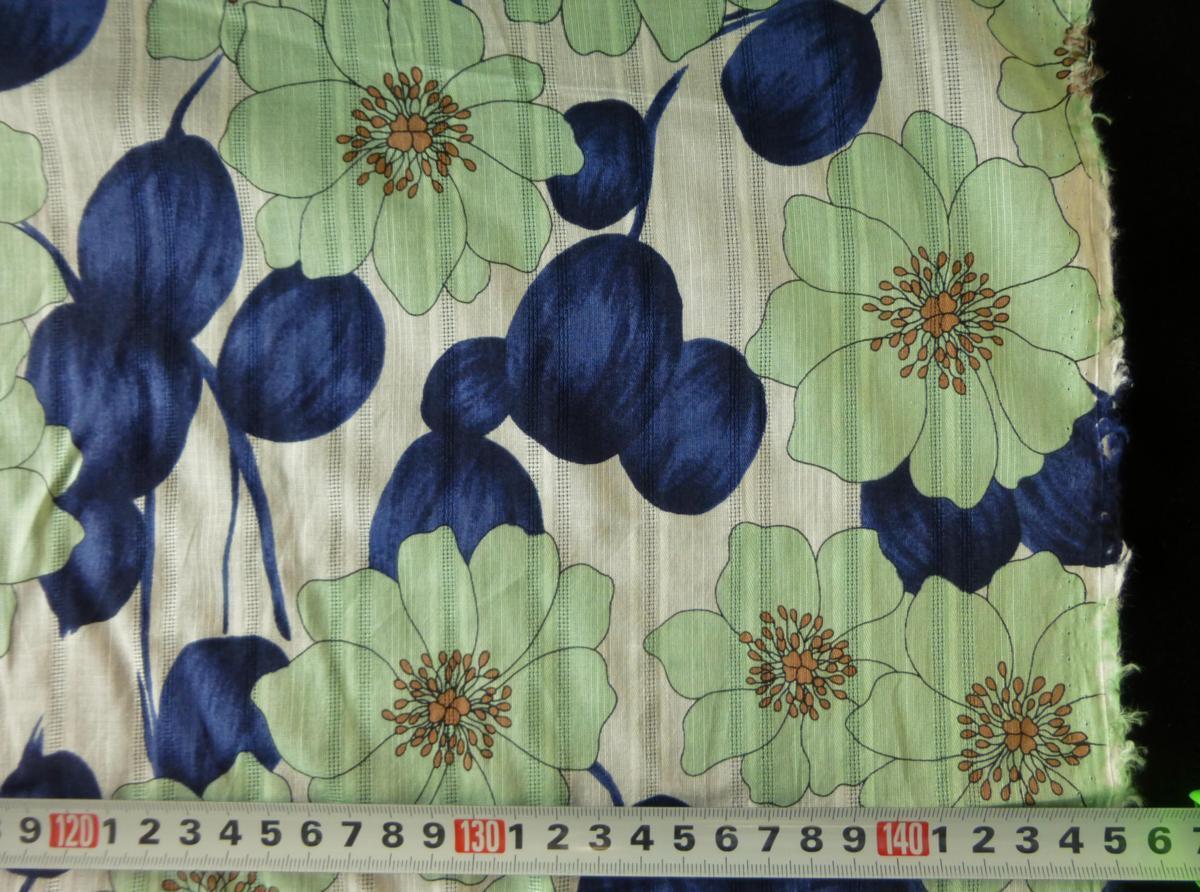 | 商品説明 | 綿100%のプリントボイル 主に夏物衣装等に使われています ミント系の多色プリント ベース生地はストライプドビー織りのボイルです 規格;幅140cm×長さ1m 価格は長さ1mの価格です 2mご入用な場合は入札数を「2」としてください |