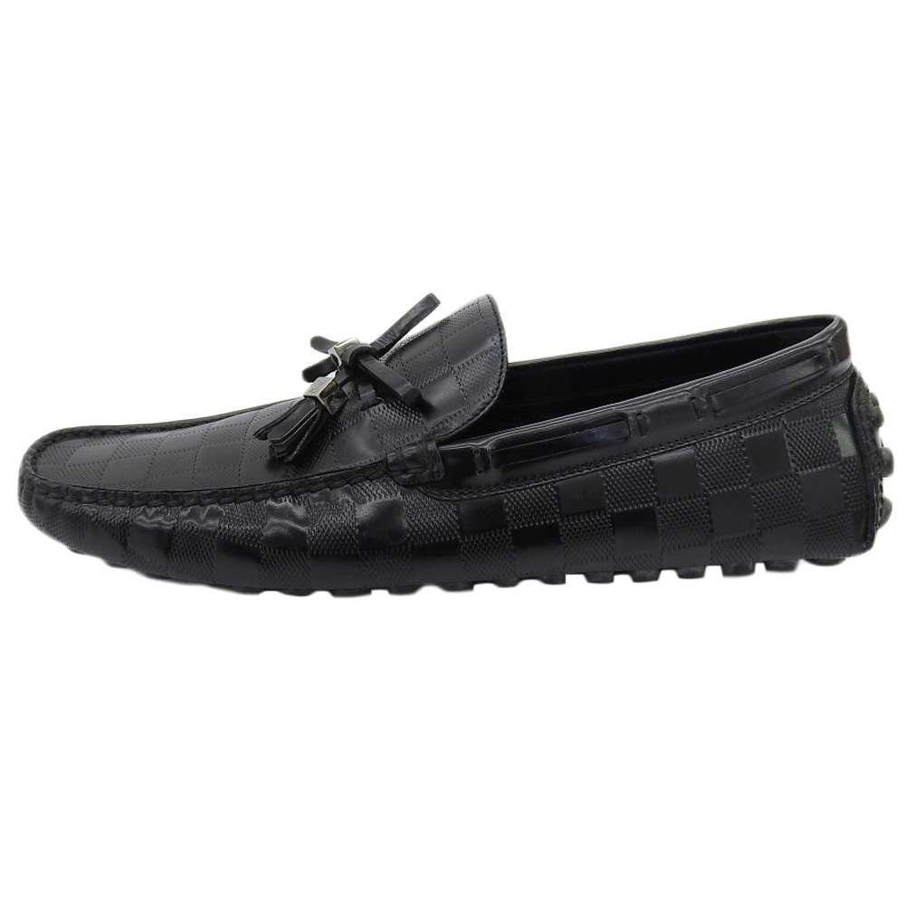 美品 Louis Vuitton ルイヴィトン ダミエ タッセル ドライビングシューズ 7 1/2 約26.0cm ブラック