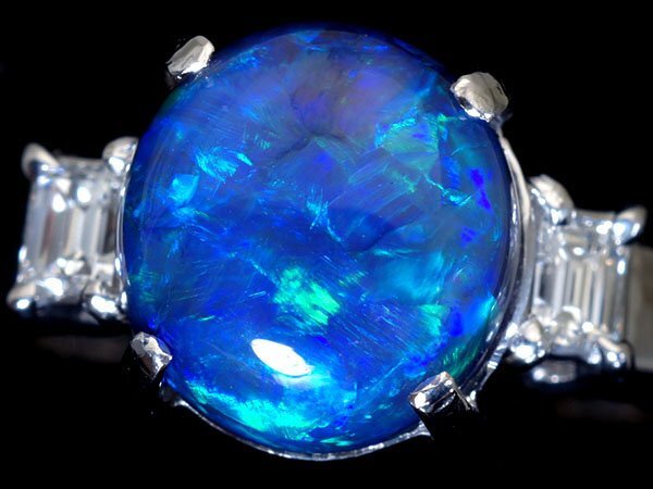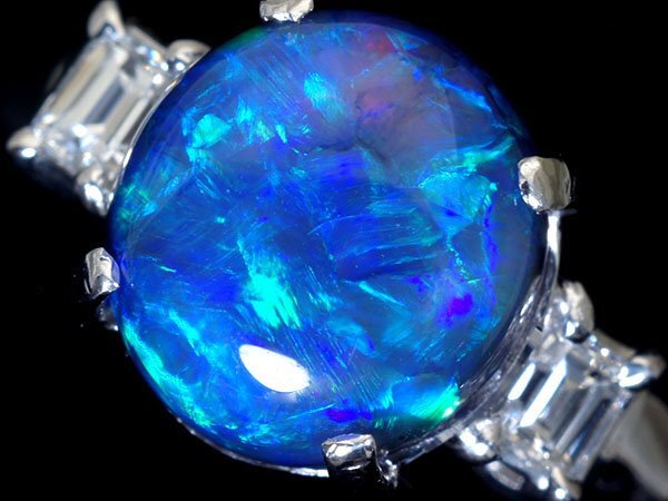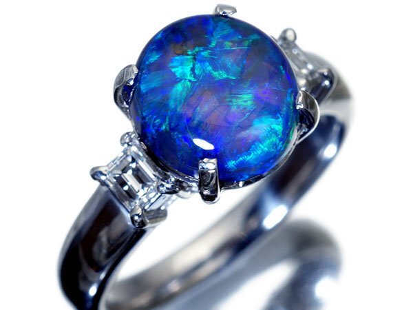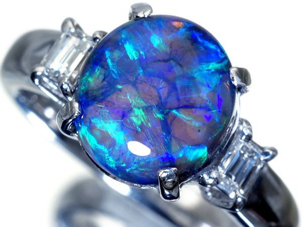 幻想的な遊色湧く超希少宝石の大粒良質天然ブラックオパール3.04ct&極上ダイヤモンド総計0.25ctを素敵に宝飾した、高級Pt900リングを激安価格で特別大放出致します!
