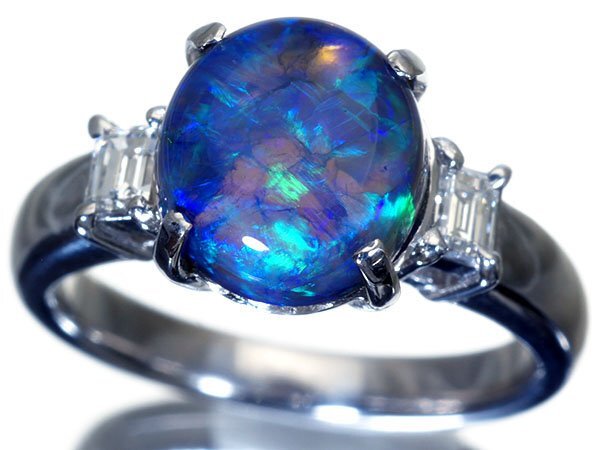 【ジュエリー極】超希少宝石!大粒良質天然ブラックオパール3.04ct&極上ダイヤモンド0.25ct 高級Pt900リング h7700uolm【送料無料】