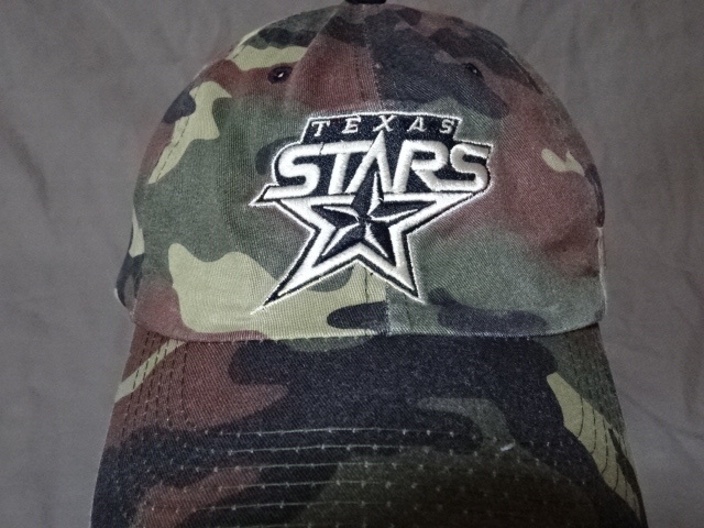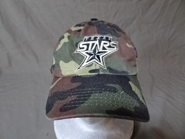 激レア USA購入 NHL 北米アイスホッケー 傘下 AHL アメリカン ホッケーリーグ【TEAXS STARS】ロゴ刺繍入り カモフラ柄 キャップ 中古良品