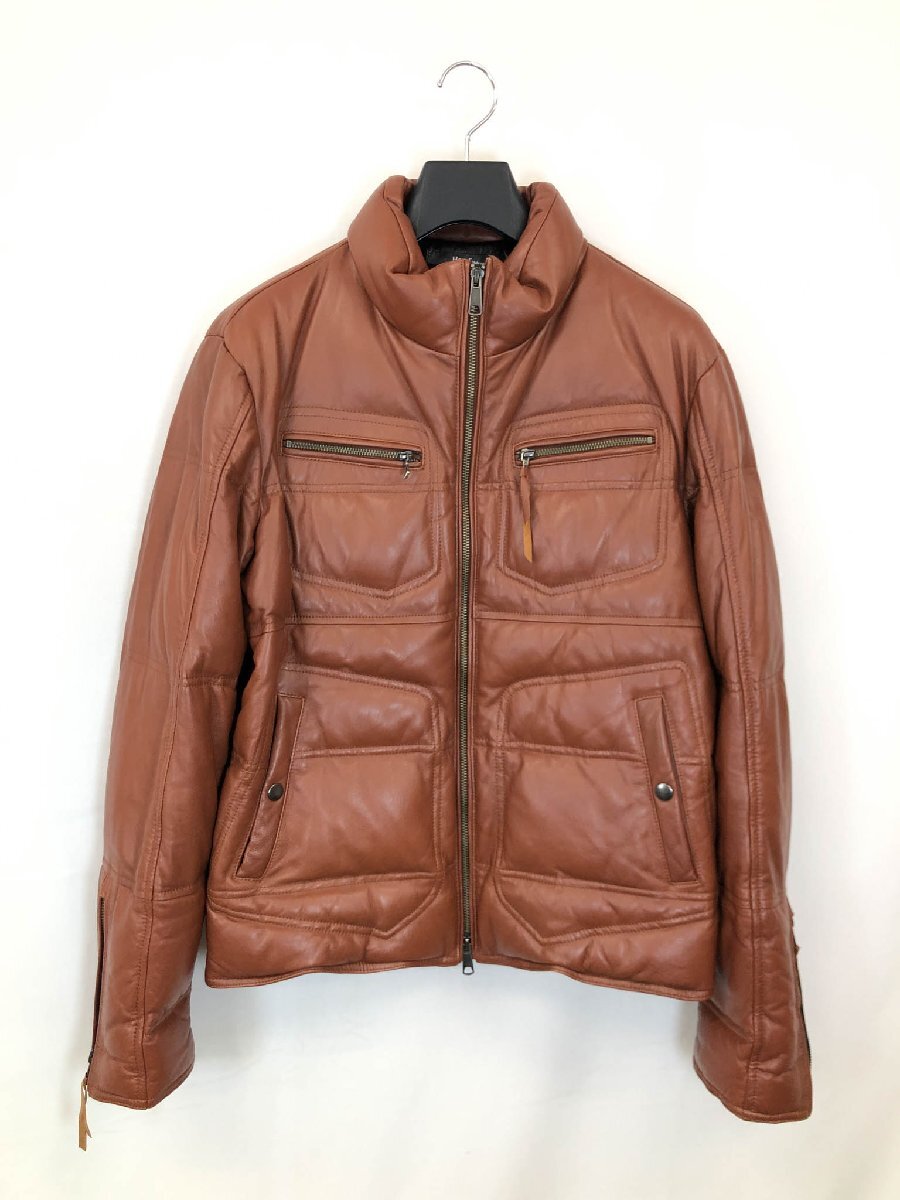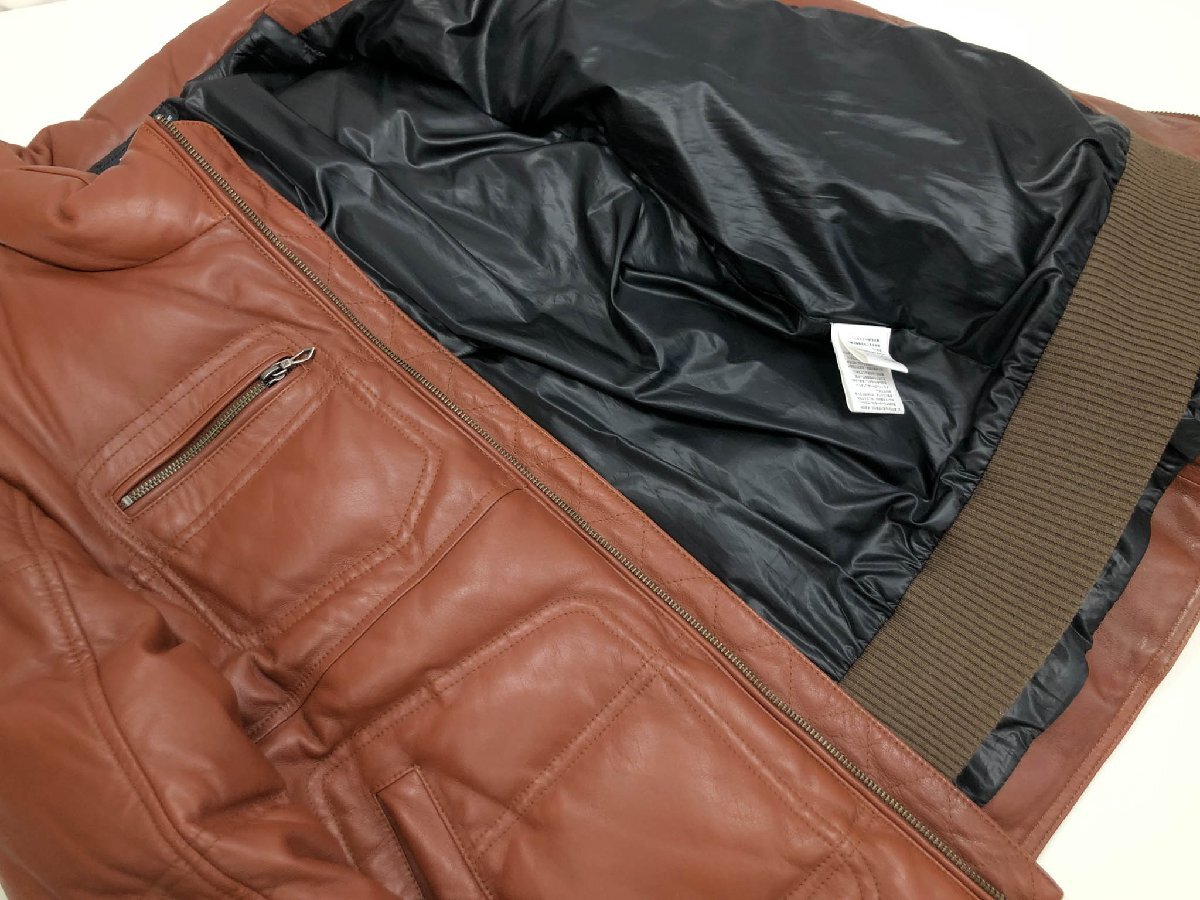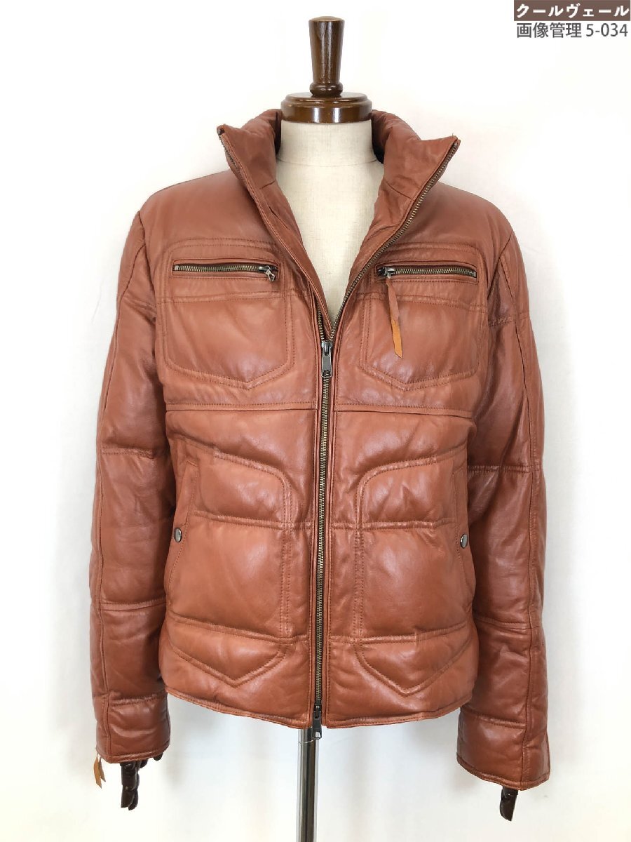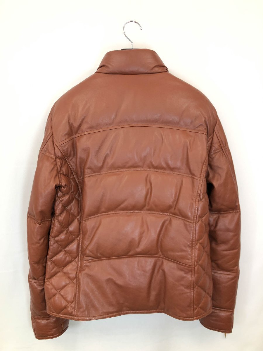 美品【HARUF ハルフ】スタンドカラー 羊革 ラムレザーダウンジャケット (メンズ) sizeLL ブラウン系 ◇17MB4773◇