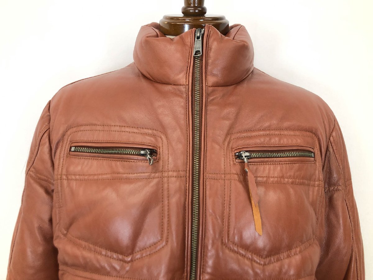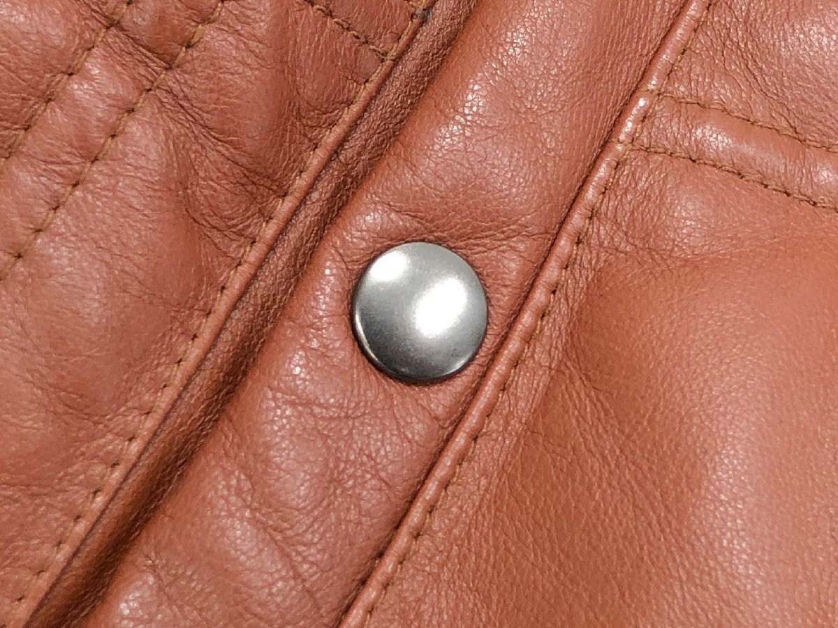 ・多少の着用感、多少のスレ、極薄い汚れ、右胸ポケットのファスナープルのレザーが欠損していますが、それ以外の状態は美品です♪天然皮革のため、目立たない程度の細かいスレキズなどはご容赦ください。