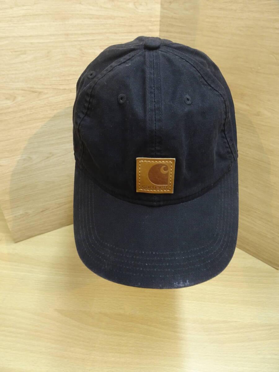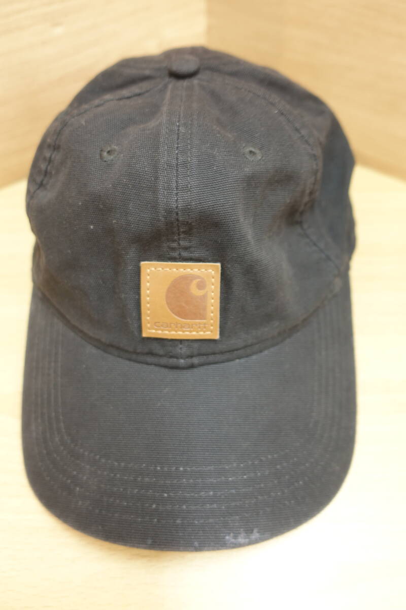 (M-542 ) Carhartt カーハート キャップ 帽子 ベースボール型 紫外線対策 ユニセックス ブラック系 ロゴ刺 ファッション中古