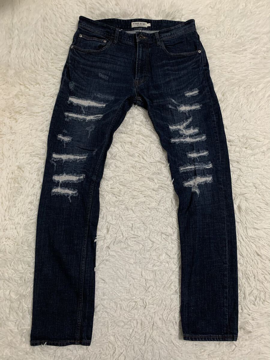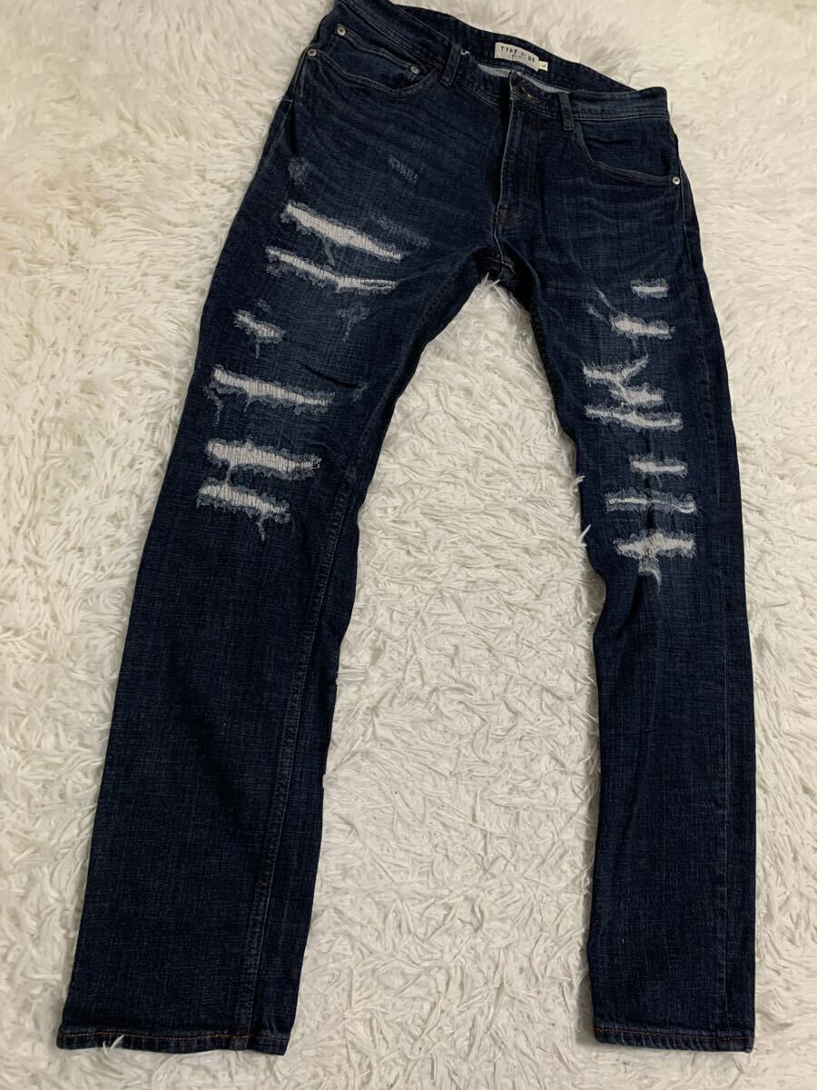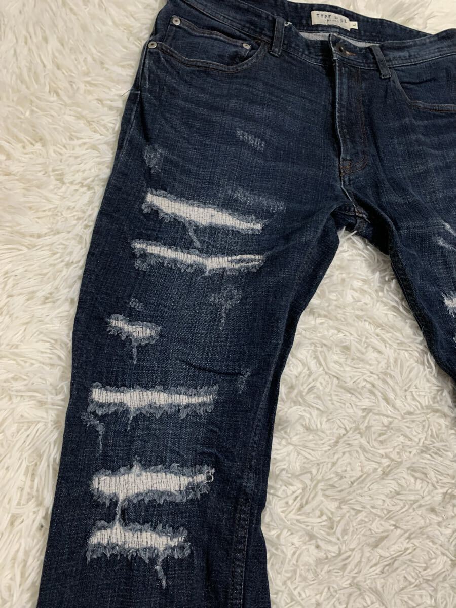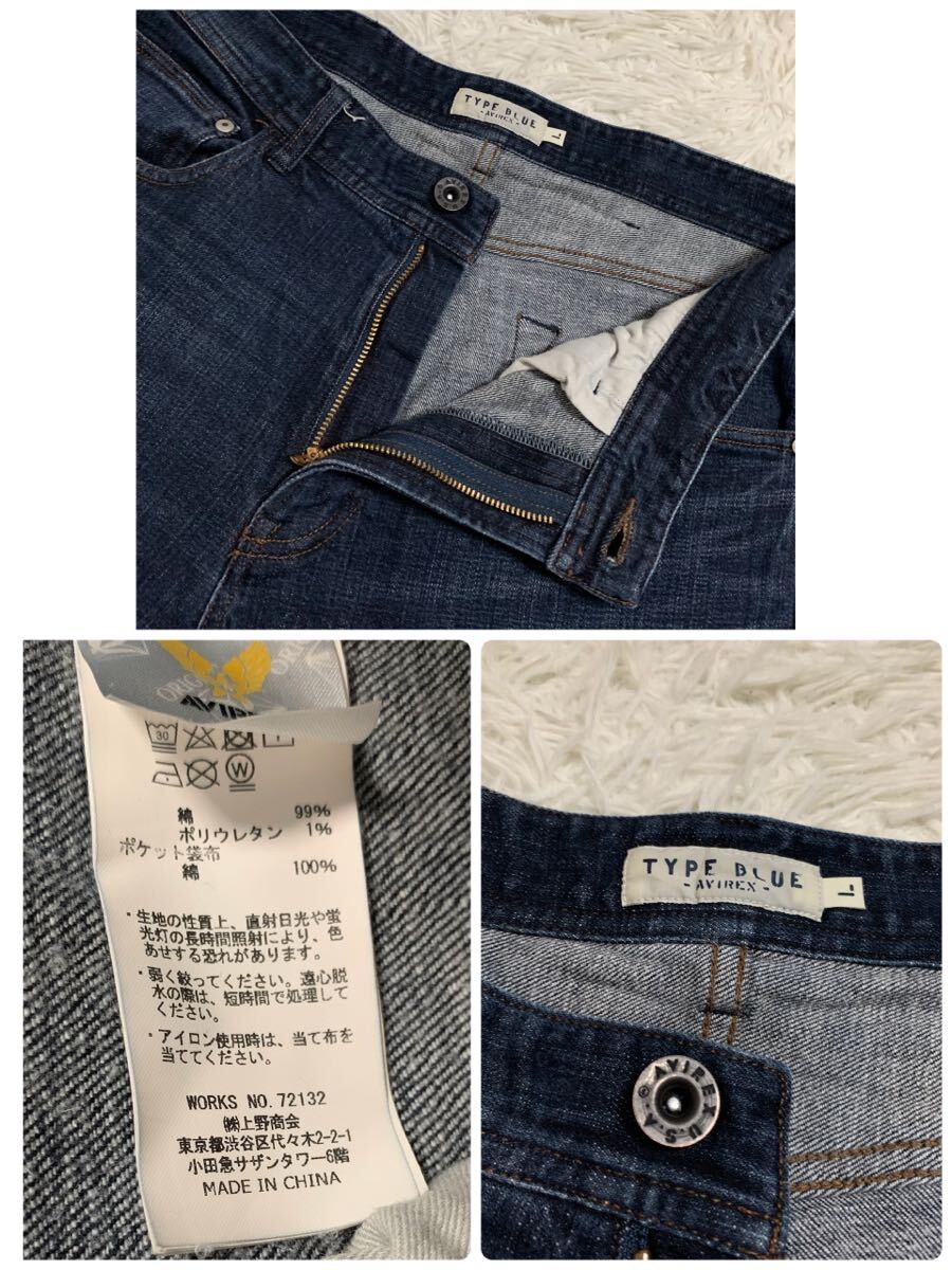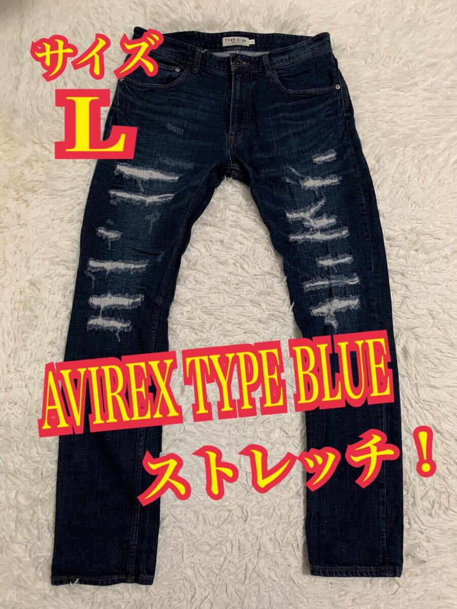 AVIREX TYPE BLUE アヴィレックス タイプブルー デニム ジーンズ ストレッチ ダメージ リペア加工 インディゴ Lサイズ