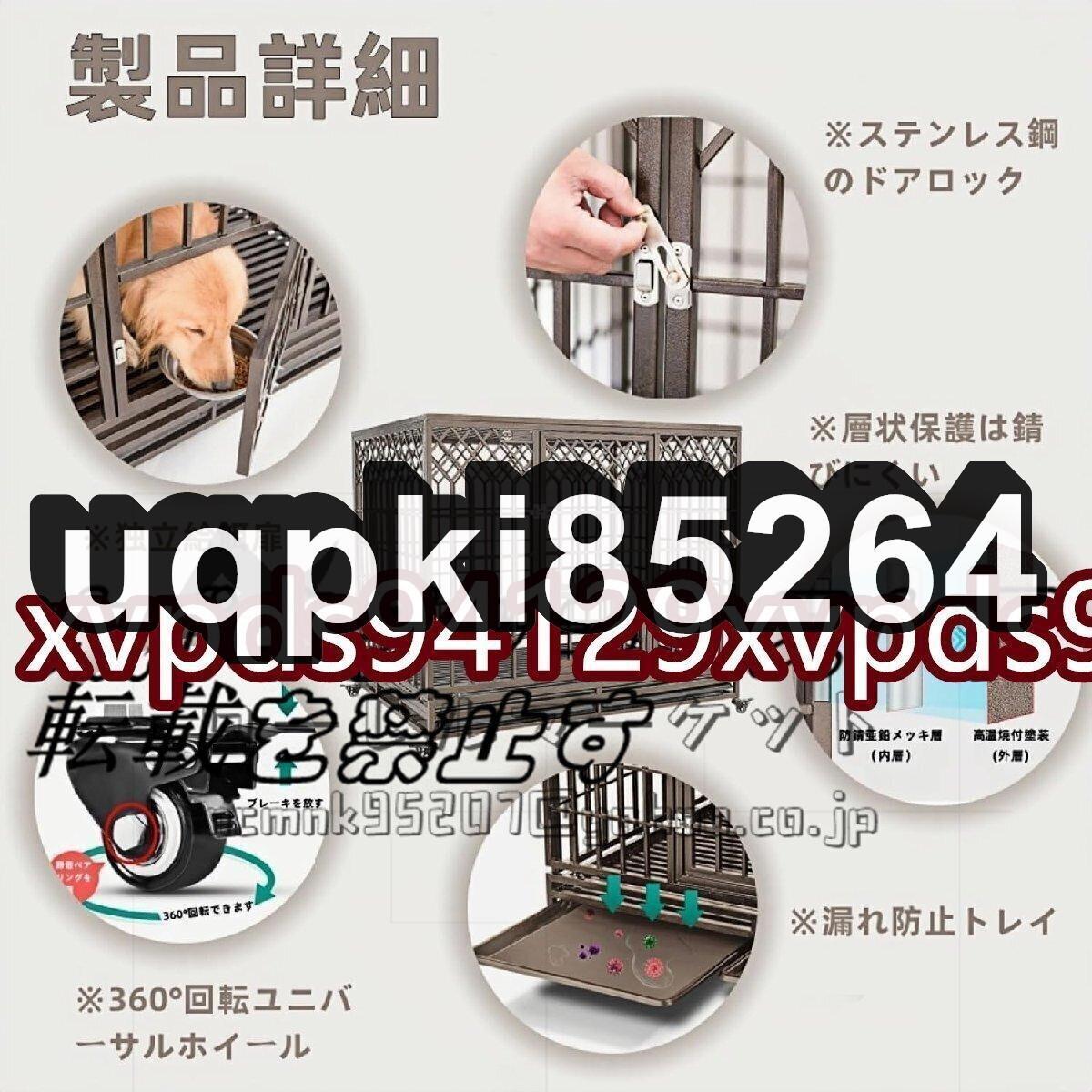 ペットの種類?犬 色? ブラウン ?サイズ 長さ148cm*幅93cm*高さ110cm 【製品のパフォーマンス】:着脱式の車輪で安全性に影響を与えることなく、より多くの利便性を提供します。最も重い犬のケージの重さを考えると、通常、車輪を持っていることは非常に便利です。360度回転するキャスターは、簡単に犬のケージのどこを移動することができます。 【究極の性能】:丈夫な金属ストリップでできており、優れた構造を持っています。 各木枠には、ペットに害を及ぼす可能性のある鋭いエッジを防ぐために、高品質の粉体塗装面があります。 取り外し可能な金属ディスクにより、掃除が簡単になります。 【頑丈・耐久性】:大型犬・中型犬用、犬用ケージ,トイレ付きゴールデンレトリーバーラブラドール、室内小型犬用ペット用、強い鉄仕様なので長時間お使いいただけます運動犬が多いのに時間。 【通年使用可能】:通気性にも優れている設計なので、夏場ではペットは蒸れにくく快適に過ごせます。また、別途購入のケージカバー、クッションベッド等を活用しましたら、冬にも便利に使えます 【追加の強度と安全性】:強度のある鋼でできており、溶接して応力点で強化し、耐久性と強力な保護を提供します。 私たちの犬小屋はあなたのペットに安全でプライベートで快適な巣を提供するので、あなたが外出しているときあなたはそこにとどまることができます。 商品の説明 ◆設置について 設置の難しさを軽減するために、4辺折りたたみデザインを採用し、ケージの剛性を確保し、設置の利便性を高めます。 製品には取り付け説明書が付属しており、組み立ては比較的簡単で、約5~10分で組み立てることができます。 ◆サイズ 95*65*80cm、20kg以内の犬に適しています。 (給餌扉なし) ※推奨犬種:テディ、コーギー、イングリッシュ&フレンチ、ビーグルなど。 105*77*95cmは30kg以内の犬に適しています。 ※推奨犬種:ボーダーコリー、チャウチャウ、秋田犬、サモエド、ゴールデンレトリバーなど。 115*80*98cmと125*93*110cmは60kg以内の犬に適しています。 ※推奨犬種:ゴールデンレトリバー、ラブラドールジャーマンシェパード、アラスカンなど。 148*93*110cmは100kg以内の犬に適しています。 ※推奨犬種:チベタン・マスティフ、コーカサス、アラスカンなど。 暖かいリマインダー:設置場所の面積とペットのサイズに応じて、適切なケージをお選びください。 実際の製品の色は、撮影時の光やコンピュータ環境によって異なる場合があります。 輸送状態に関する情報はメールでお知らせしますので、メールをチェックしてください。 インストールを提供することはできません。 サイズはアマチュアが測定するため、いくつかの誤差がある可能性があります。 当店のすべての商品は検品しました。深刻な問題があれば、商品を受け取ってから2日以内に連絡してください。 私たちはお客様の取引を楽しい取引にして、お客様を安心させたいと思っています。 よろしくお願いいたします。 ★商品写真はできる限り実物の色に近づけるよう努めておりますがご使用のPCモニター設定や部屋の照明により多少、色の変化が感じられる場合がございます