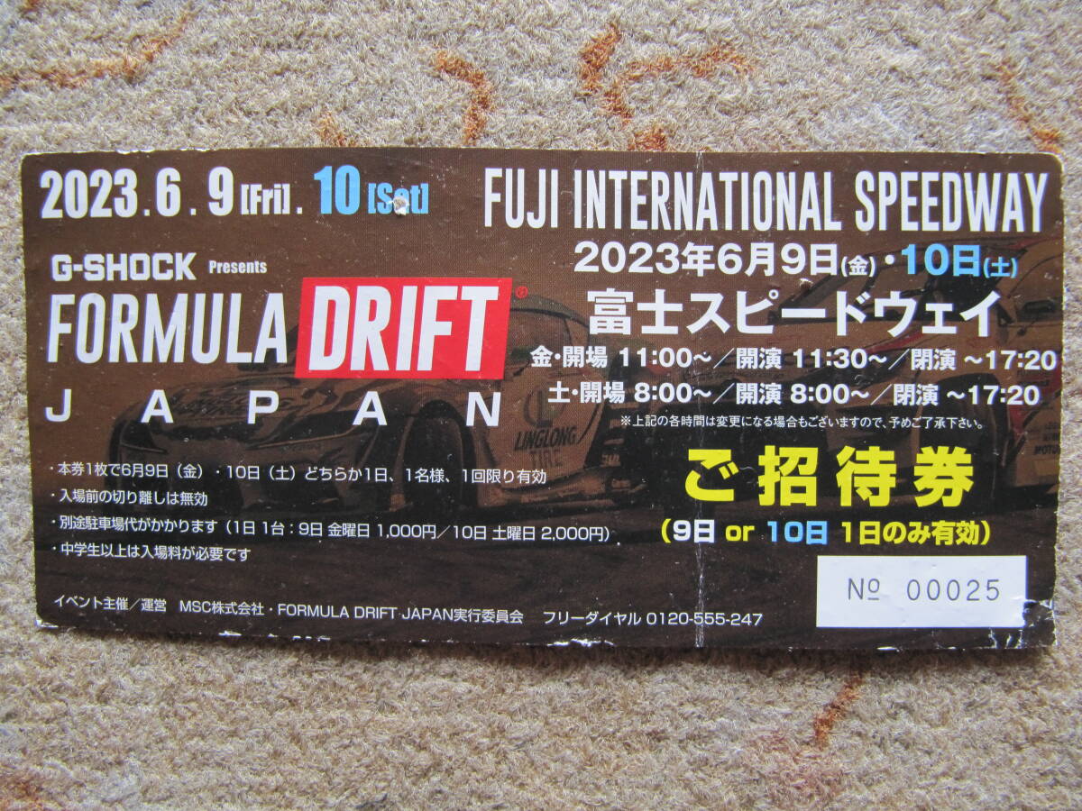 モータースポーツ記念品 使用済み 「2023年 フォーミュラドリフト ジャパン 富士スピードウェイ」 ご招待券です。欲しい方にお譲りします。