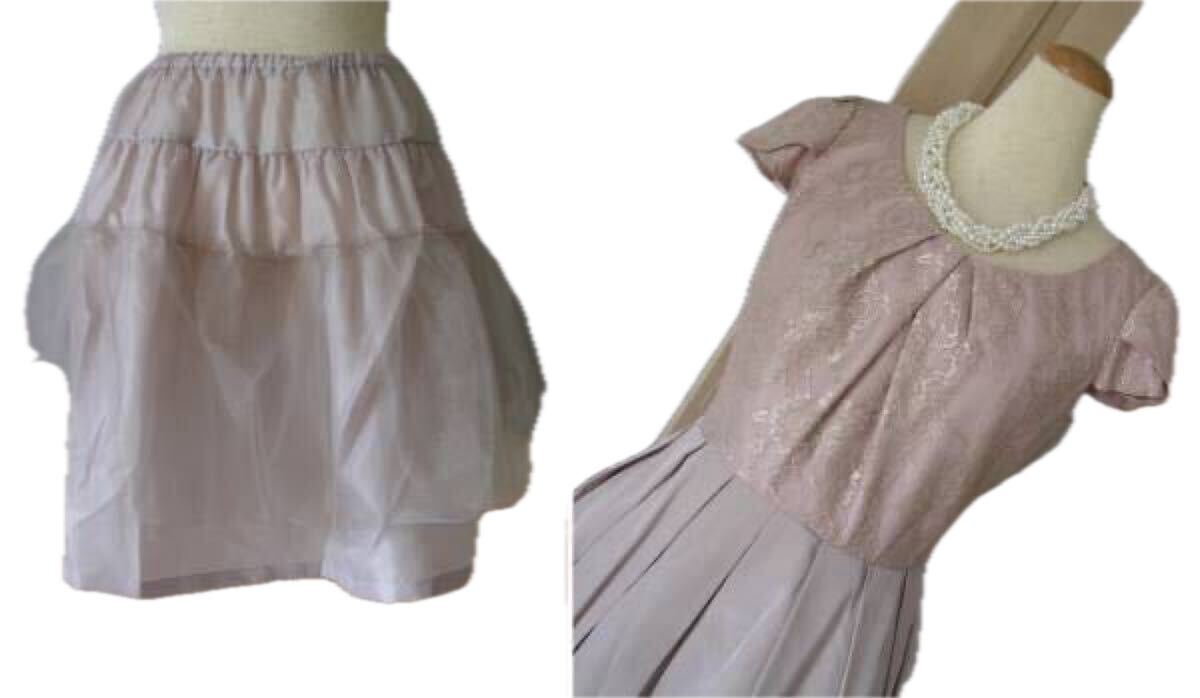 | 表記サイズ:38 平置き実寸:着丈約88、脇下身幅約43、 バニエ:ウエストゴム、着丈45 ※実寸サイズにつきましては、多少の誤差はお許しください。 材質: 表地:ポリエステル85、綿15 レース部分:ナイロン100 バニエ:ポリエステル100、チュール:ポリエステル100 裏地:ポリエステル100 カラー:画像確認(くすんだベージュピンクのような色合い) ※カラーに関しては、一般的に見えるお色を記載しております。 あくまでも私見ですので、予めご了承ください。 | ||