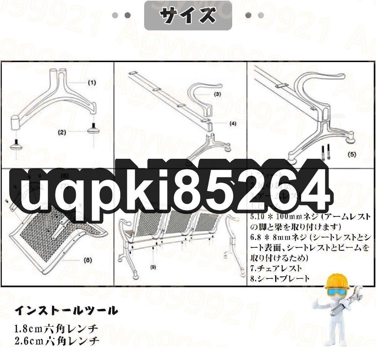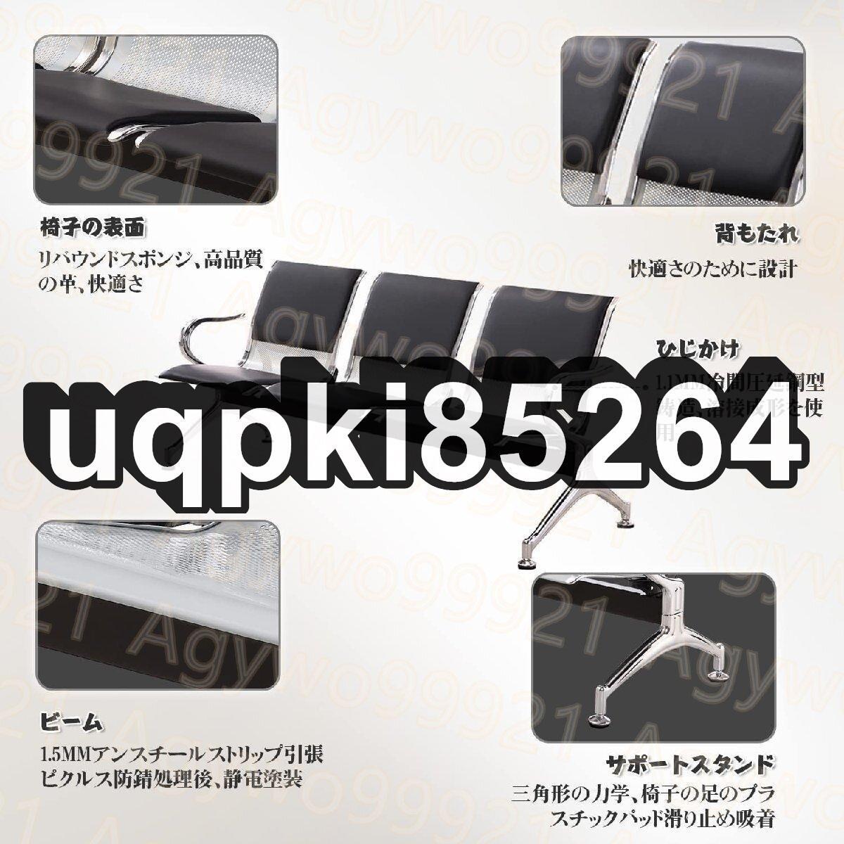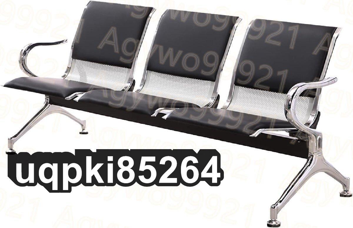 3つの椅子 レセプションチェア ゲストチェア 待合椅子 背もたれ付き アームレスト ステンレス鋼 防汚 175cm*65cm*78cm ブラック