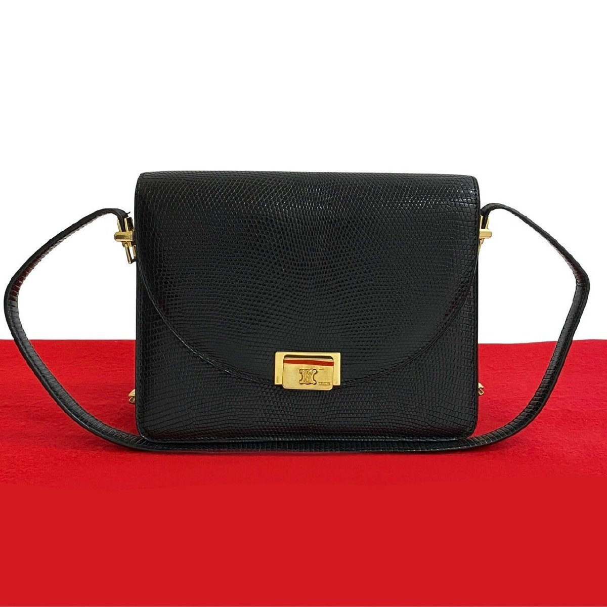 極 美品 CELINE セリーヌ ヴィンテージ トリオンフ ロゴ 金具 レザー 本革 セミ ワン ショルダーバッグ ミニ ハンドバッグ ブラック 60915