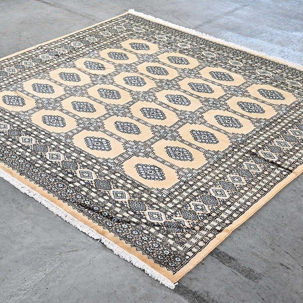 新品 未使用 パキスタン製 手織り ウール絨毯 ブハラ柄 ギュル文様 羊毛 手結び ハンドノット カーペット ラグ リビング 応接室 P-21