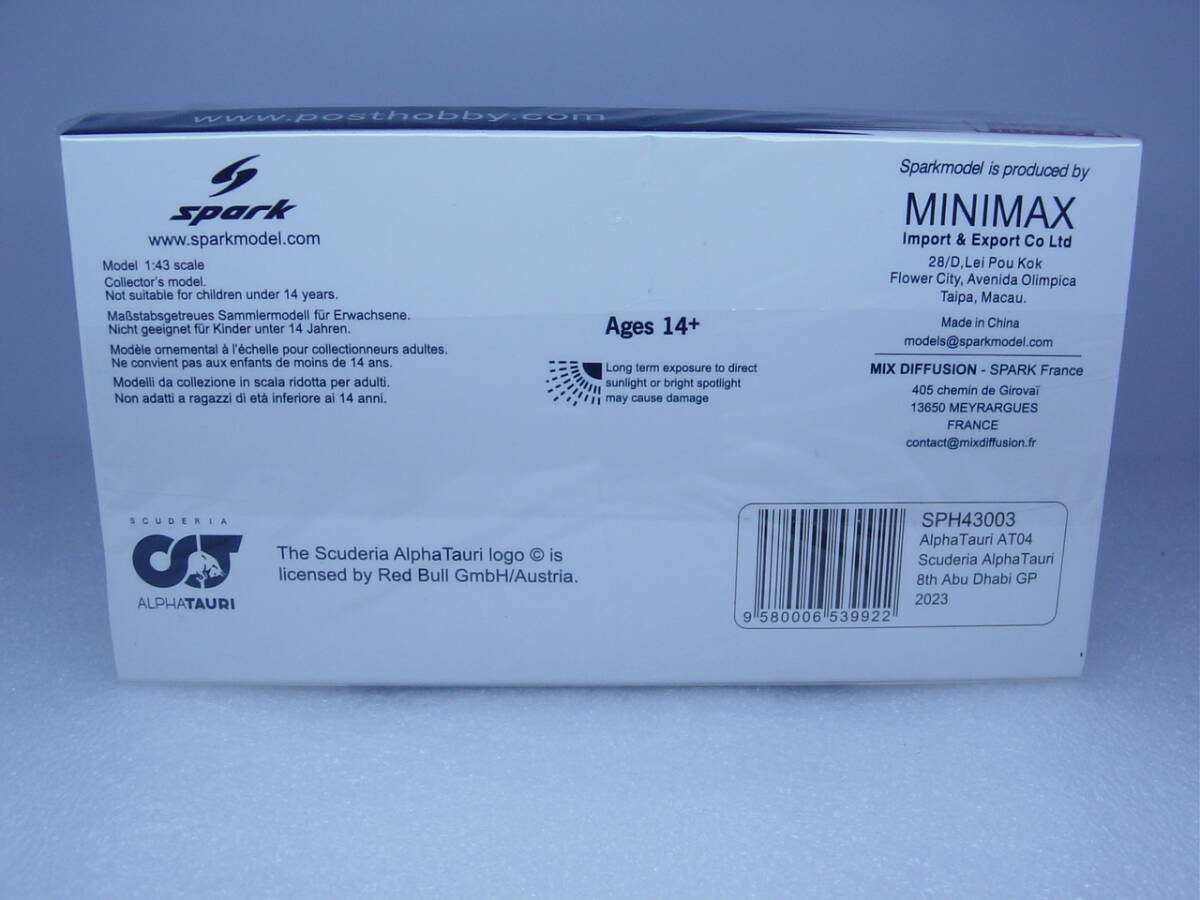 spark ポストホビー別注 1/43 Alpha Tauri AT04 8th Abu Dhabi GP 2023 Race Leader&Driver of the day アルファタウリ 角田裕毅 アブダビ