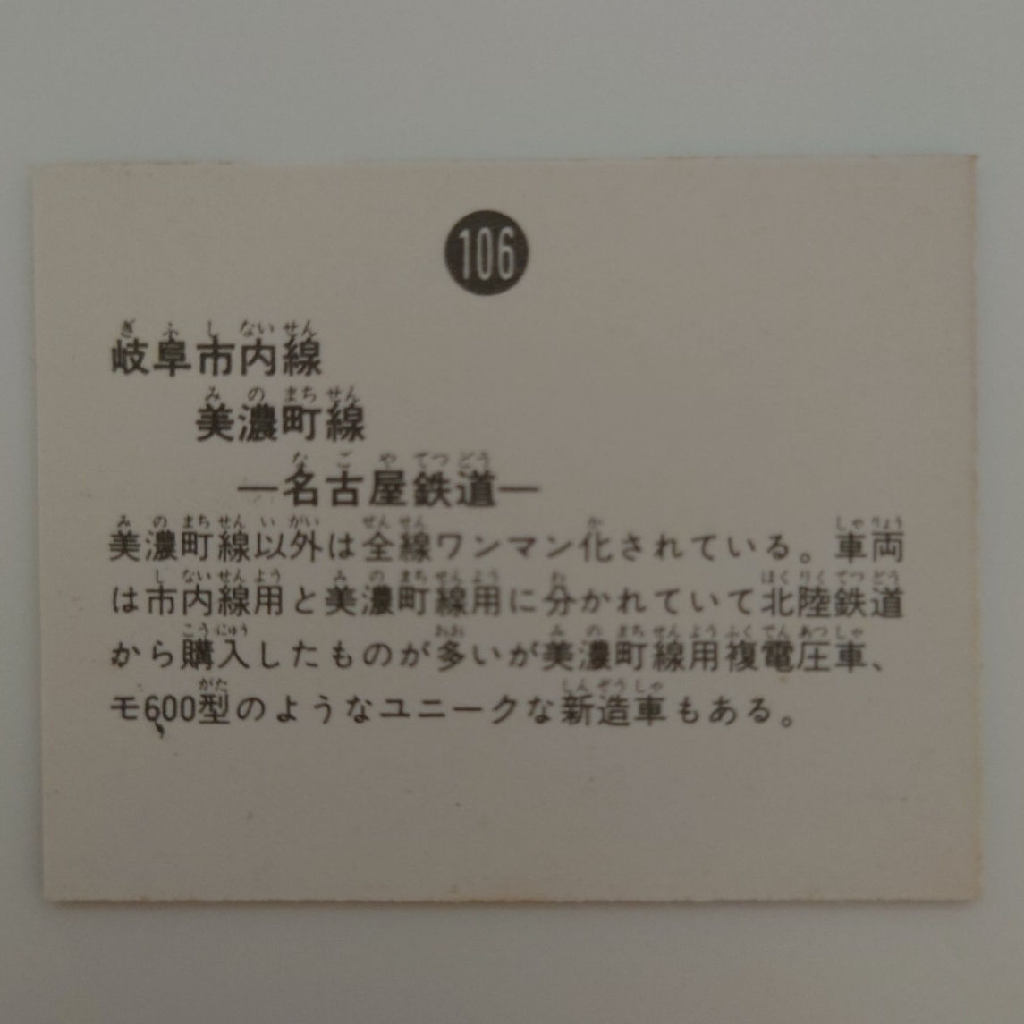 日本の電車シリーズ ミニカード No.106 岐阜市内線美濃町線-名古屋鉄道- 当時物 昭和レトロ