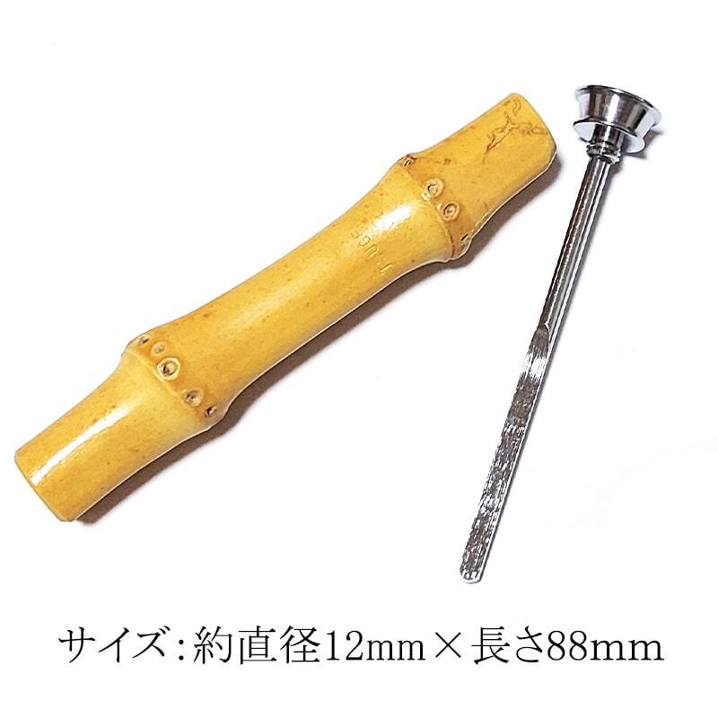 商品説明 | 【バンブータンパー】 根竹にピックが内蔵されたお洒落なタンパー。 1本でタンパーとピックの2役で非常に便利です。 スリムな作りのため、バッグやポケットにもすっぽり。 持ち運びが多い方におすすめです。 いかがでしょうか。 |