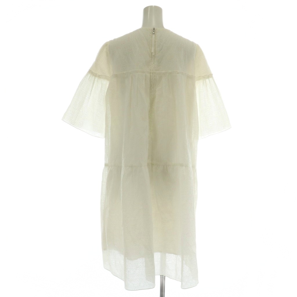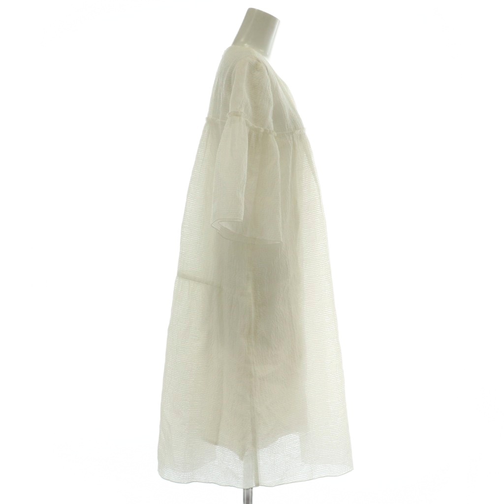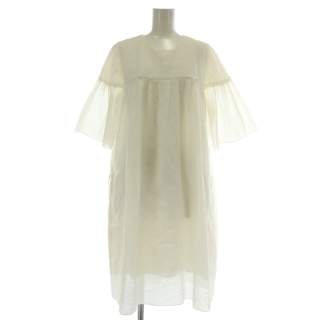 フォクシーニューヨーク FOXEY NEW YORK ワンピース ナイロン混 五分袖 ひざ丈 ギャザー 40 M 白 ホワイト /XZ ■GY19 レディース