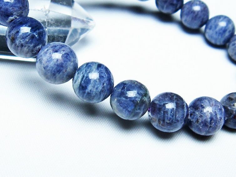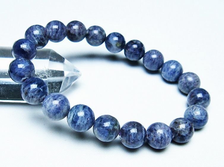 ■商品名: スーパーセブンアイオライトブレスレット ■商品ID: T378-3666 ■商品重量:約 28.3g ■商品サイズ:内周約:165mm(±5mm)粒直径約:10mm(±0.5mm) 【アイオライト(菫青石)】 正式な鉱物名を「コーディエライト」といいます。 アイオライトという通称はギリシャ語ですみれ色を意味する「ion」から名付けられ、和名では菫青石(きんせいせき)と呼ばれます。名前通りの美しいすみれ色が特徴ですが、アイオライトは多色性の性質を持ち合わせています。 見る角度や光の当たり方によって変わる紫色や青色、青みがかった灰色や薄黄色などのシックで独特な色合いはアイオライト最大の魅力といえるでしょう。 この多色性を活用して大昔には羅針盤として用いられていたことから、アイオライトは「導きの石」として視野を広げたり新しい一歩を踏み出すための判断力と決断力をもたらすといわれています。 恋愛面においても迷いが生じたときに現状を打開する勇気を与えて一途で深い愛情をもたらすとされ、結婚や恋人との生活で心強いサポートが得られそうです。 ⇒ アイオライトをもっと詳しく ◆ワンポイント情報 アイオライトのなかには雲母に変質し、断面が桜の花のような模様をした桜石と呼ばれるものも存在します。京都府亀岡市で発見された桜石は稗田野菫青石結晶として国の天然記念物に指定されています。 |
