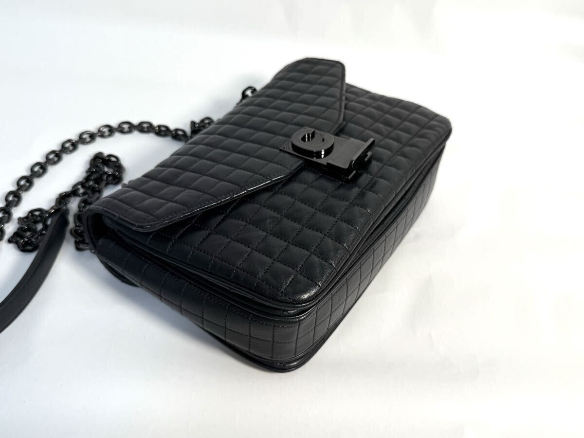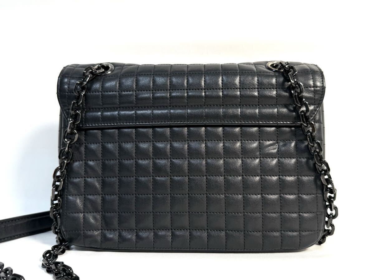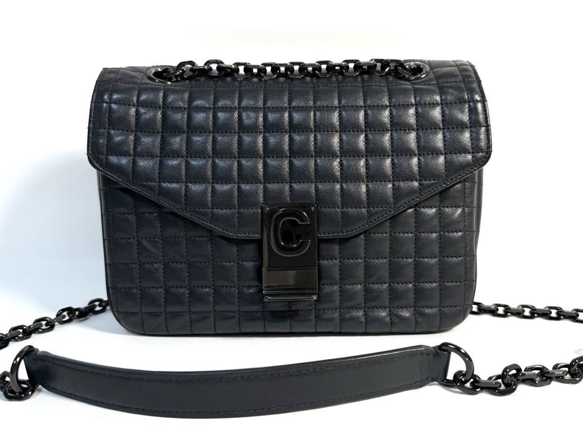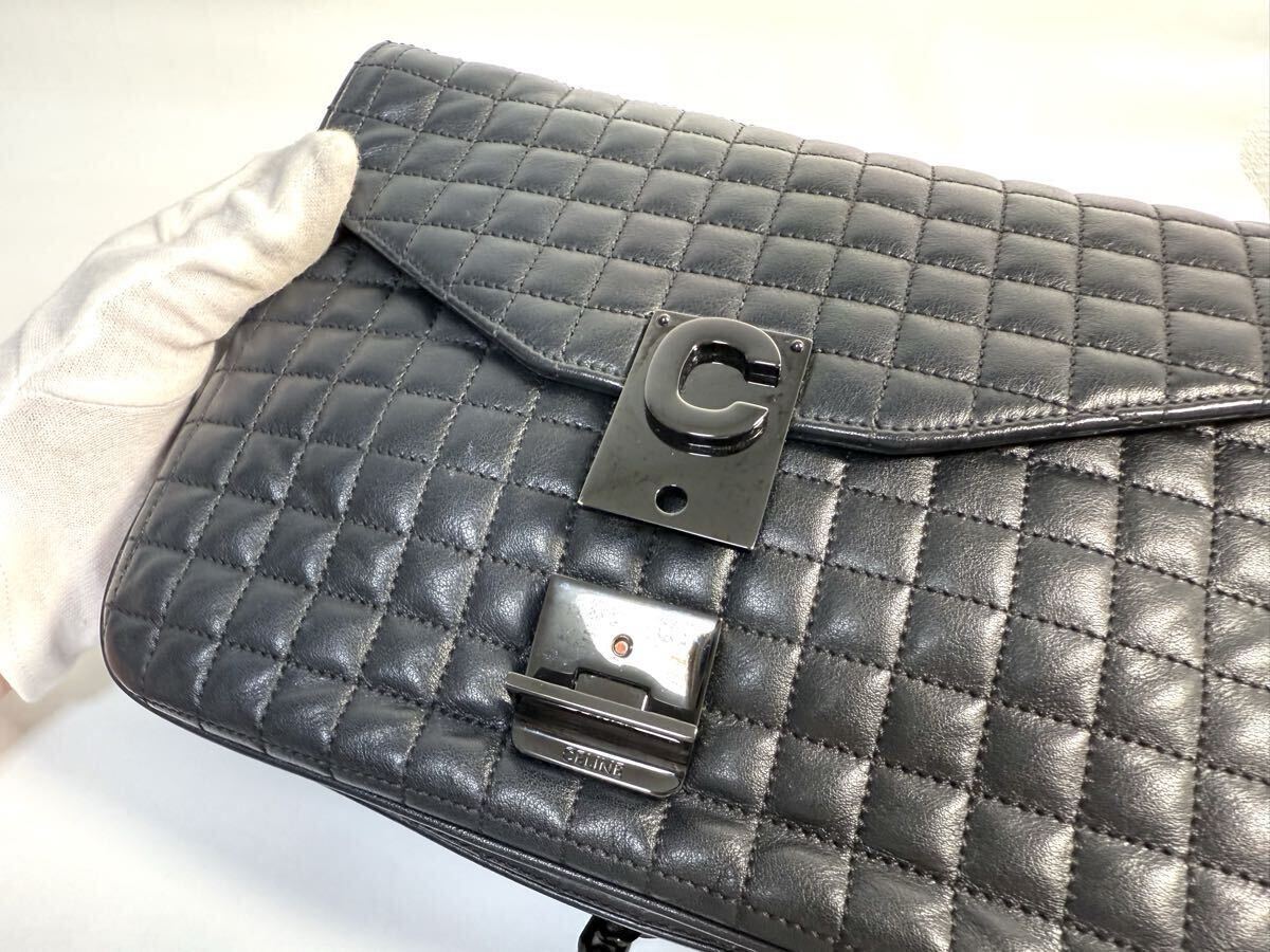 美品 CELINEセリーヌ ショルダーバッグ Cバッグ セーバッグ ミディアム ブラック カーフ ラムスキン 187253BFZ キルテッド