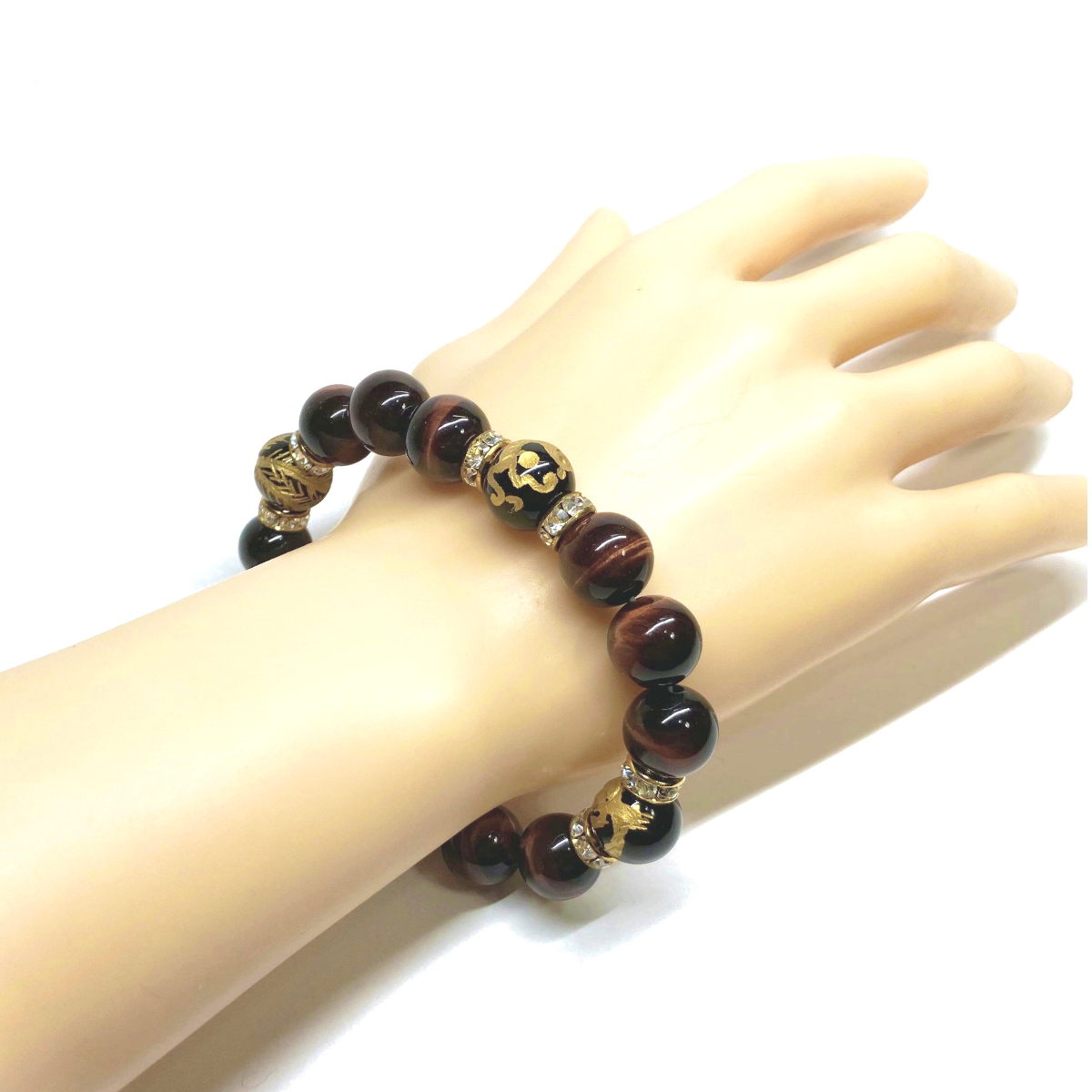 四神獣金彫オニキス×レッドタイガーアイ 12mm パワーストーン ブレスレット 天然石 青龍 白虎 玄武 朱雀 運気上昇 開運 金運 お守り G