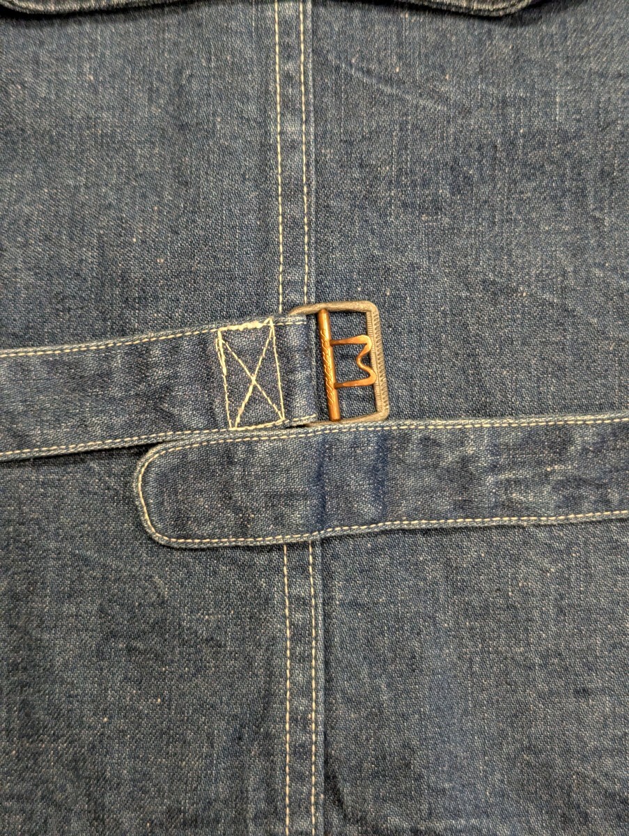 フロントとバックでデニムのカラー(ワンウォッシュとバイオウォッシュ)を切り替えているあまり見ないデザインとなっています
