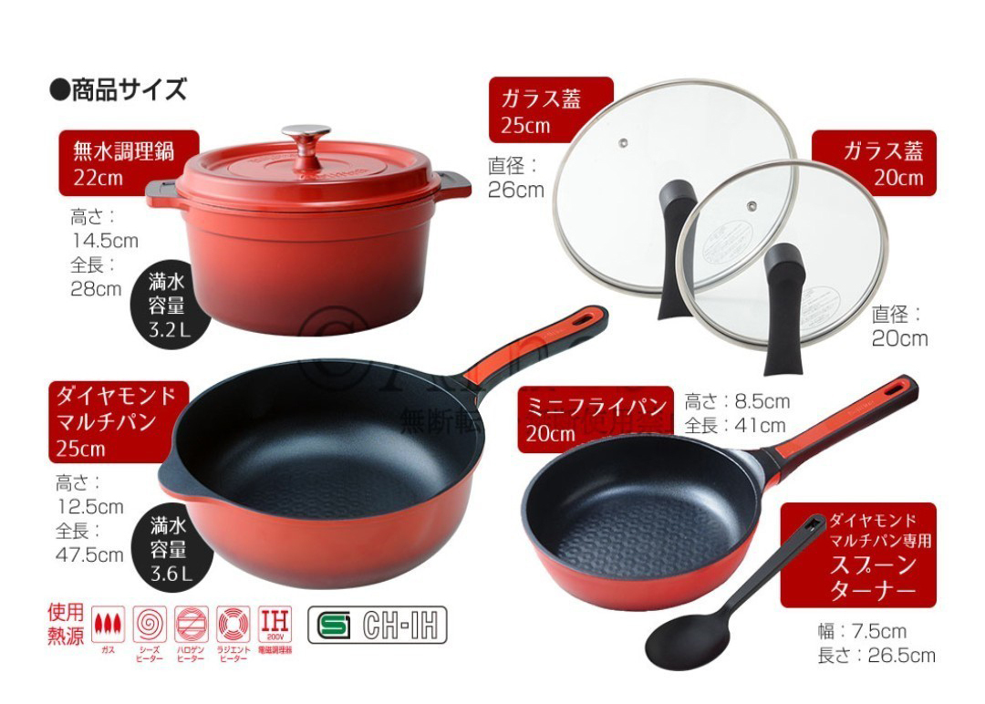 | 【商品名】 708【売切り】未使用 ベルフィーナ ダイヤモンドパン グランドセット 22㎝無水鍋 25㎝&20㎝フライパン レッド オーブン IH対応 メーカー:ベルフィーナ 商品名:ダイヤモンドパン グランドセット 型番:A-77240 【内容】 ・22㎝ 無水調理鍋(高さ14.5㎝×全長28㎝) ・25㎝ ダイヤモンドマルチパン(高さ12.5㎝×全長47.5㎝) ・20㎝ ミニフライパン(高さ8.5㎝×全長41㎝) ・25㎝ ガラス蓋(直径26㎝) ・20㎝ ガラス蓋(直径20㎝) ・ダイヤモンドマルチパン専用スプーンターナー ・取扱説明書・メニュー集 詳しい仕様に関しましては、こちらの【製品ページ】をご参照ください。 【状態】 未使用保管品。 細かいコンディションに関しましては、画像にてご確認下さいませ。 細かい部分で気になさる方は入札をお控えくださいませ。 【発送】 発送は佐川急便、送料元払いのみの対応とさせていただいております。 ≪北海道≫ (北海道)2,710円 ≪北東北≫ (青森・秋田・岩手)2,310円 ≪南東北≫ (宮城・山形・福島)2,180円 ≪関東≫ (茨城・栃木・群馬・埼玉・千葉・東京・神奈川・山梨)2,180円 ≪信越≫ (長野・新潟)2,180円 ≪東海≫ (静岡・愛知・岐阜・三重)2,180円 ≪北陸≫ (富山・石川・福井)2,180円 ≪関西≫ (京都・滋賀・奈良・和歌山・大阪・兵庫)2,310円 ≪中国≫ (岡山・広島・山口・鳥取・島根)2,440円 ≪四国≫ (香川・徳島・高知・愛媛)2,570円 ≪九州≫ (福岡・佐賀・長崎・大分・熊本・宮崎・鹿児島)2,710円 ≪沖縄≫ (沖縄)2,860円 (沖縄のみ、ゆうパックを利用させて頂きます。) |